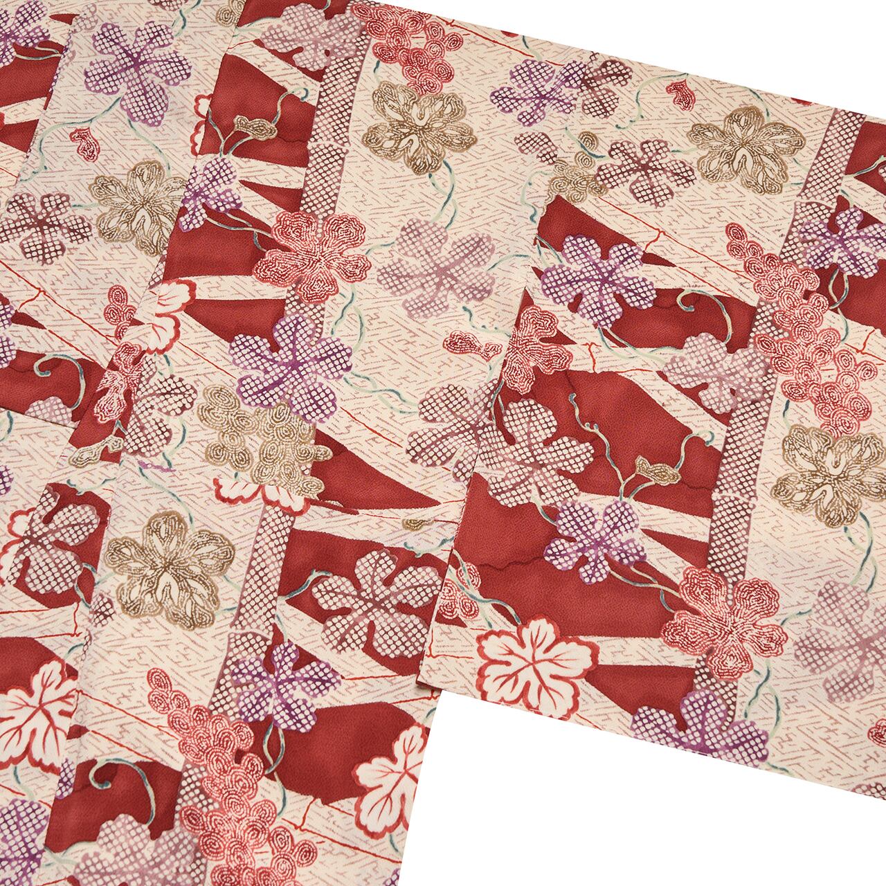 多ち花 生垣に葡萄の模様小紋 袷着物 【中古】