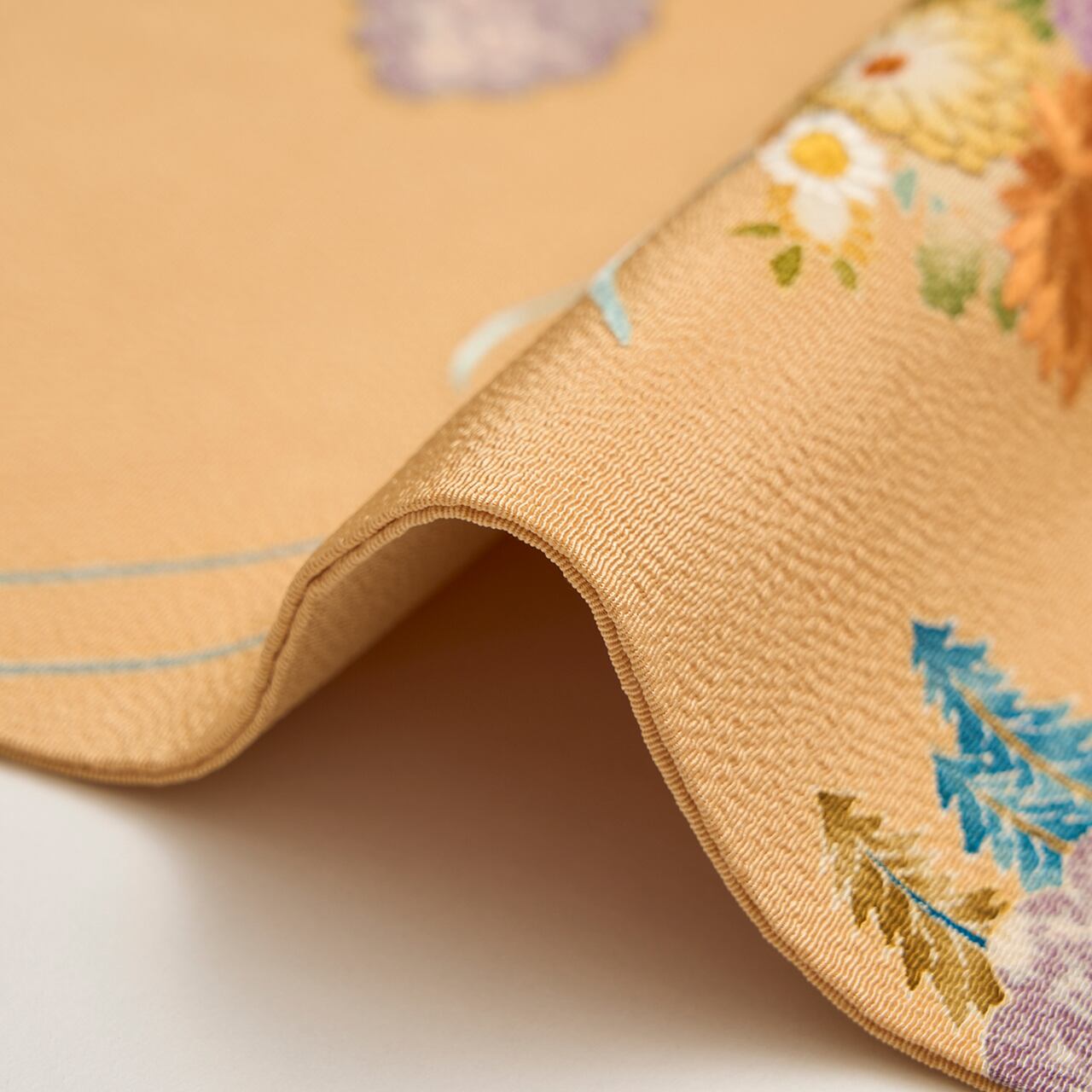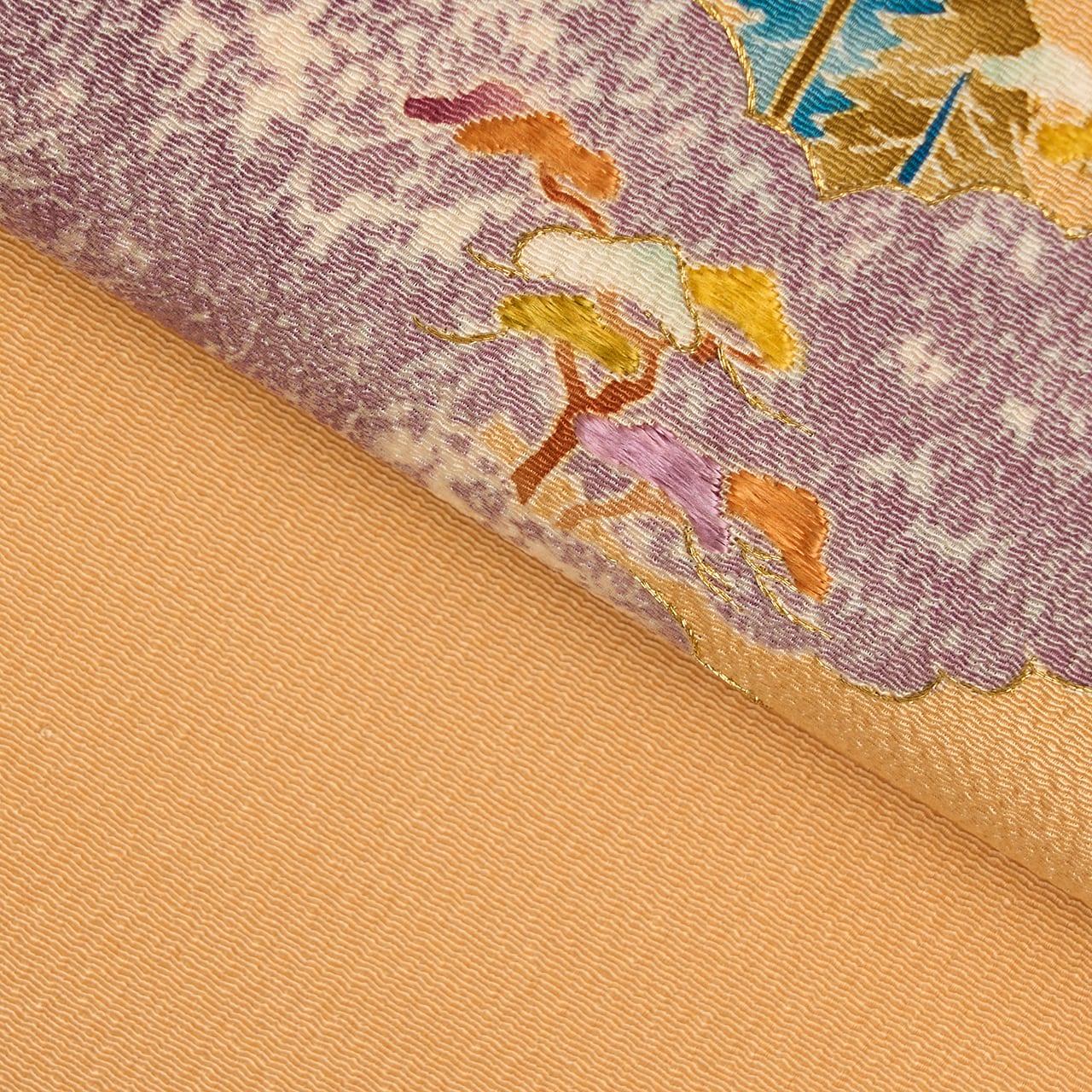 そして、それとは対照的な松や杉やお花などの細やかな友禅の描写と、手刺繍のあしらい方などは、歴史ある、そして高い技術を持った染屋さんだからこそ成せる業のように見受けられます。