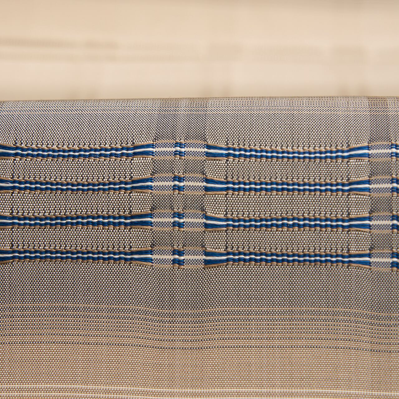 草木染による洗練された色使いと、繊細な糸を巧みに使いこなし、香り立つような美しい布を織り続け、多くのファンを魅了する藤山千春さんの吉野格子の九寸名古屋帯をご紹介させていただきます。