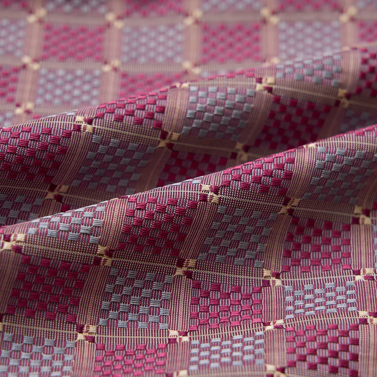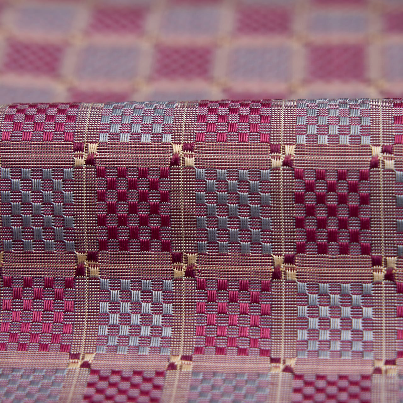 片面は経糸が浮き、もう片面は緯糸が浮くという組織になりますので、両面どちらでも、お好みの面を表にしてお仕立てができるという楽しみがあります。