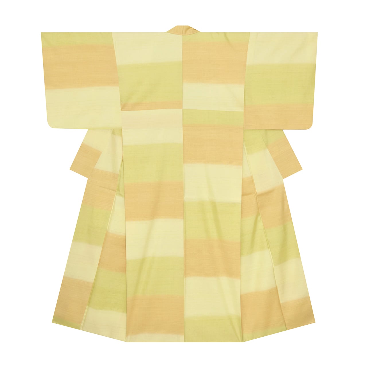 ゲッキツという植物で染められた若草色・若苗色は、まるで天蚕紬のような色合いと光沢で、福木で染められた明るい黄色・女郎花色とお互いを引き立て合って見えます。