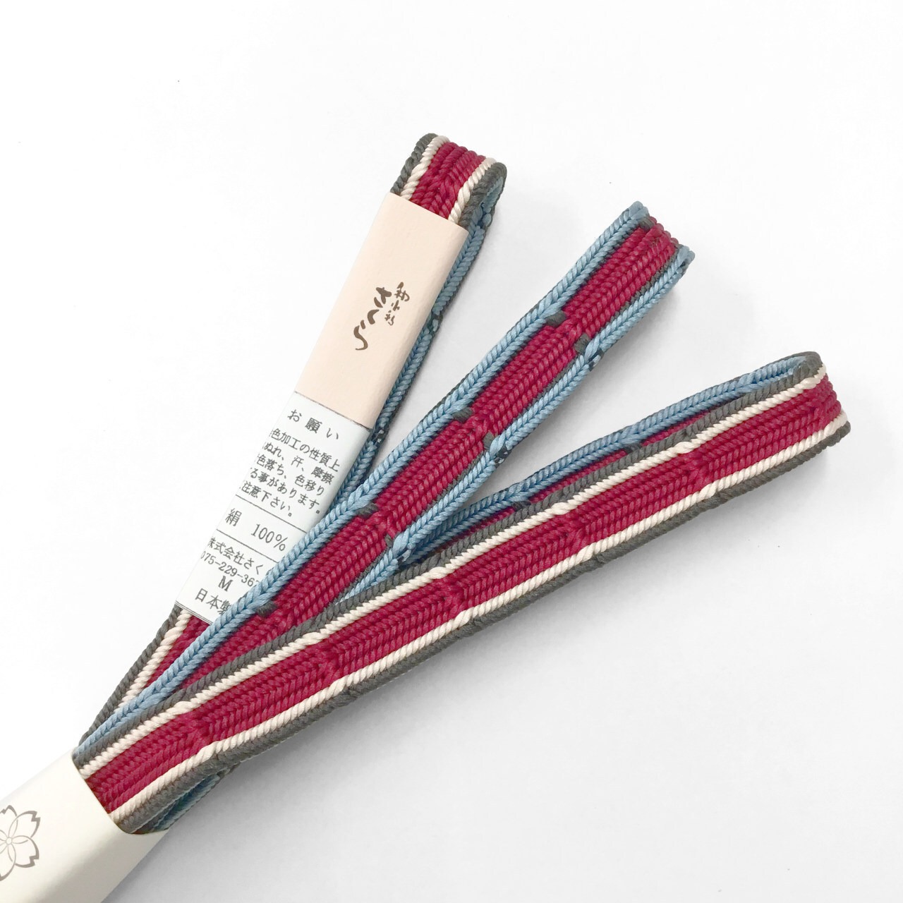 和小物さくら 帯締め 綾竹竹節組 両面 濃紅色に白色と黒橡色と浅縹色 絹100%【新品】 絹100%【新品】
