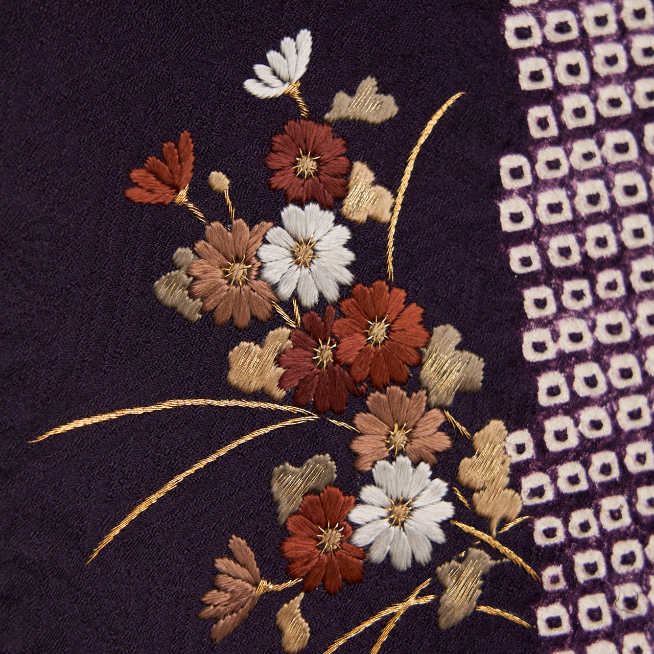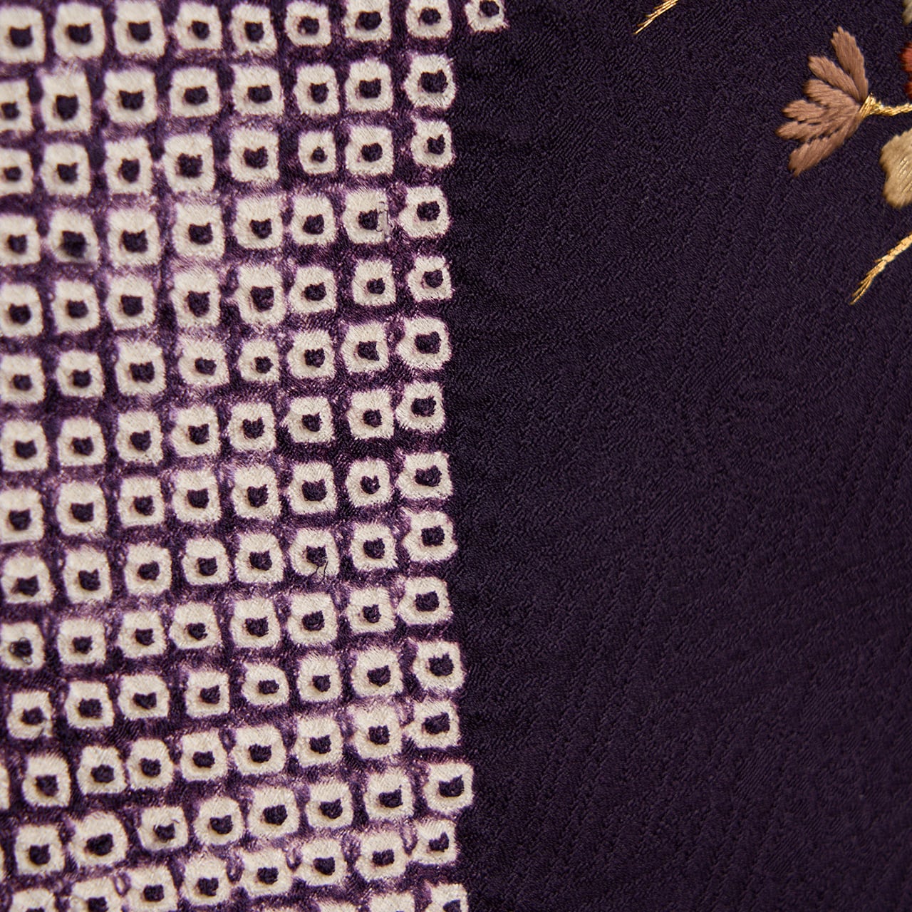 地色の濃い紫色にも気品があふれ、細かな手刺繍にも加工の良さが感じられる、高級感のある大変おすすめの一点です。