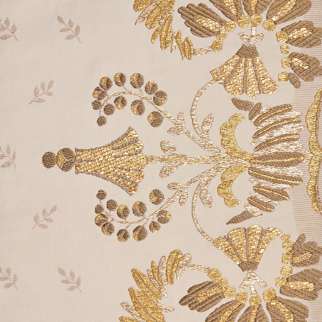 これほどの種類の金箔の糸を使い分けて、変化のある模様を織り出されるためには、高い技術を要する事と思いますが、川島織物さんだからこそ成せる業といえるのでしょう。