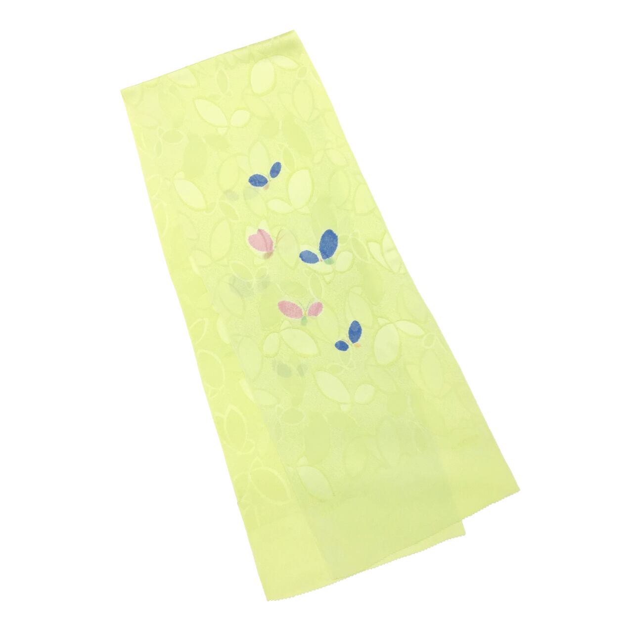 和小物さくら 帯揚げ 丹後ちりめん 若苗色に紺瑠璃色と薄紅梅色 紋意匠蝶柄 絞り蝶【新品】
