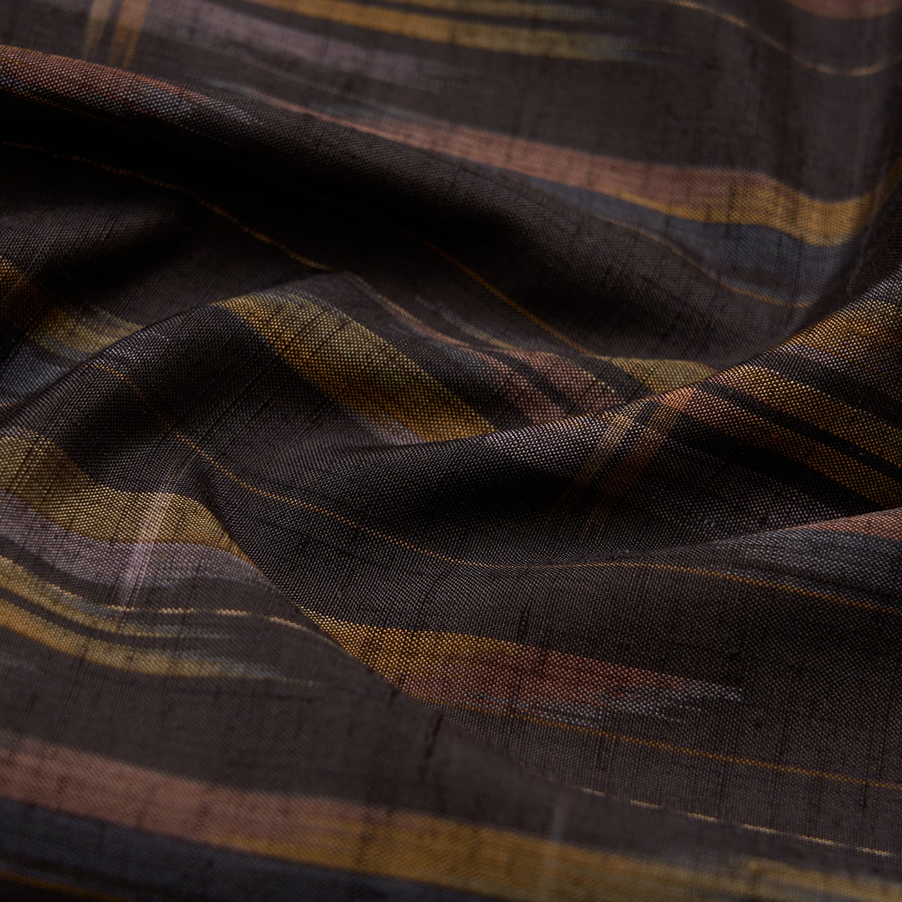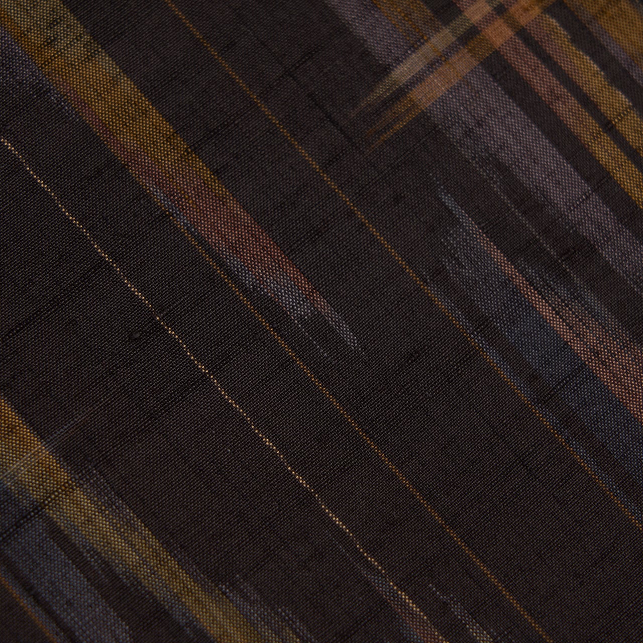 縦絣の部分は、茶鼠色と黄枯茶色、薄鼠色の薄紫が暈しのように染められていて、それが面白い陰影をもたらしています。