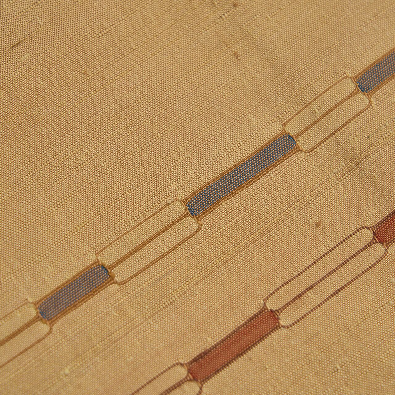 めがね織の中に使われた色がほんのりと優しくて、横長の丸が可愛らしいアクセントとなった、とても素敵な大変おすすめの逸品です。