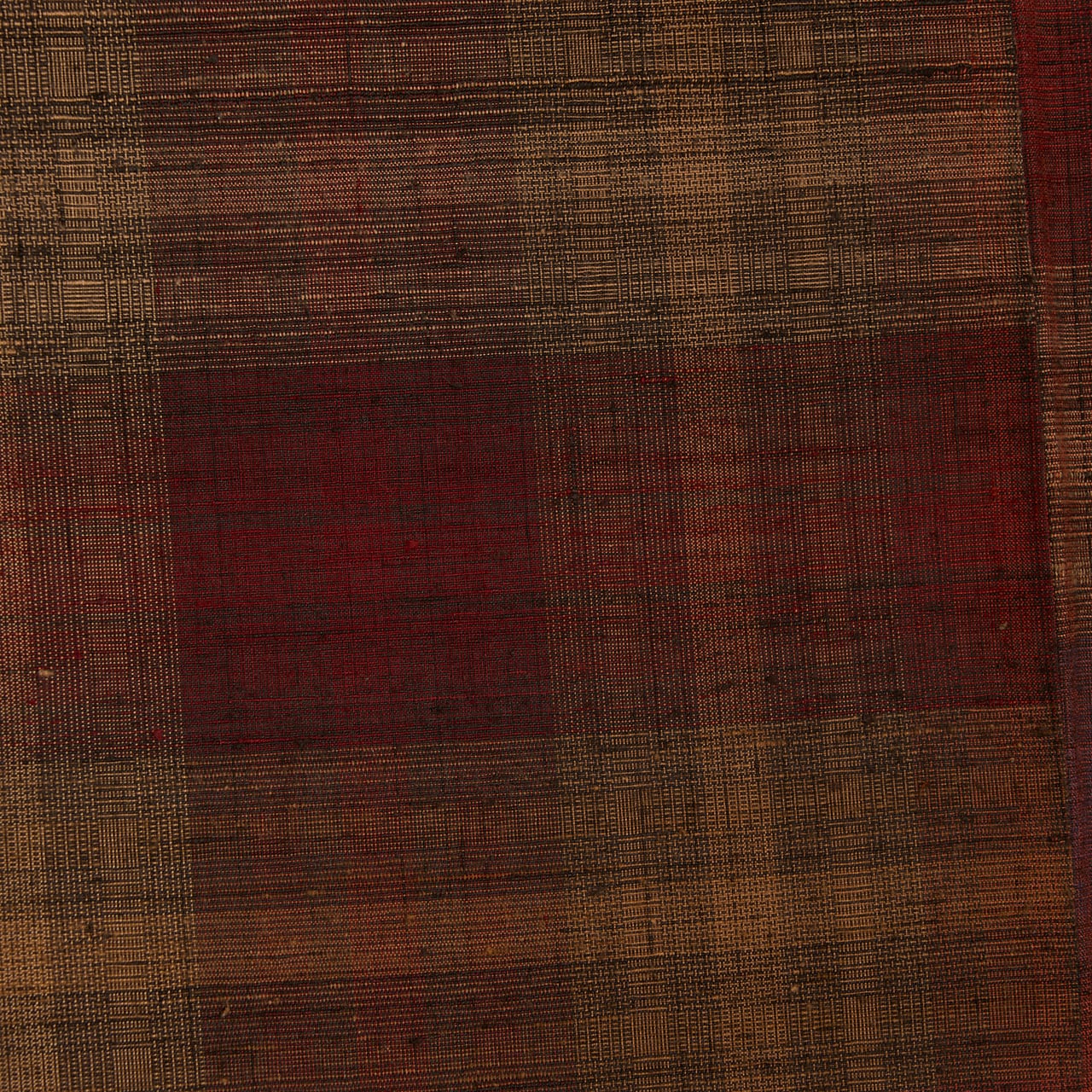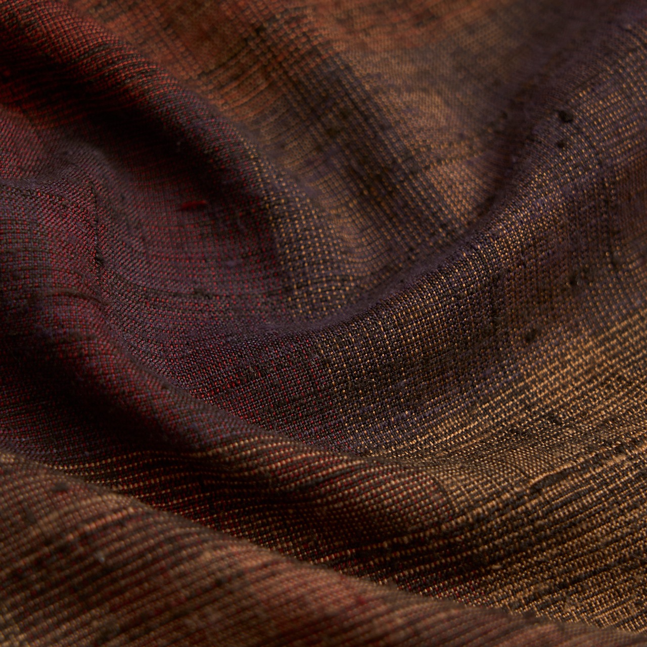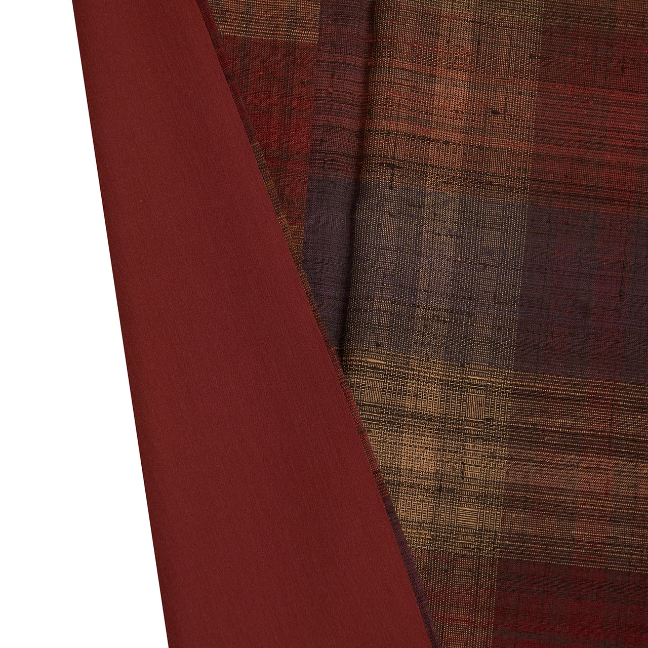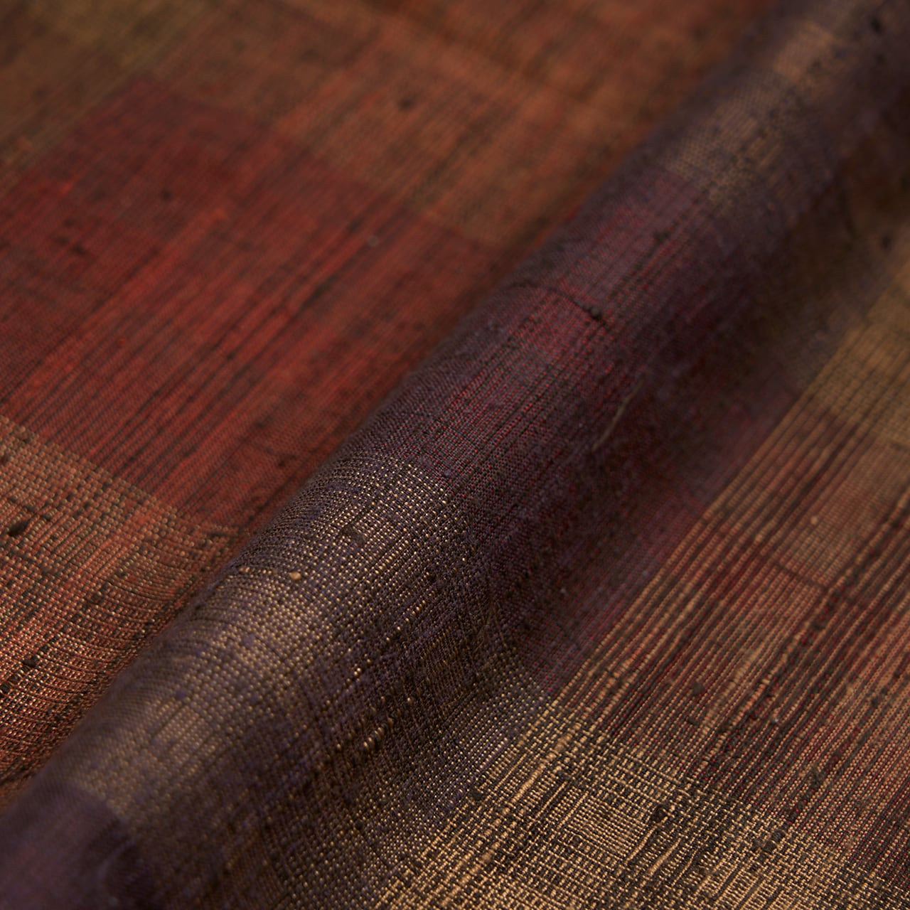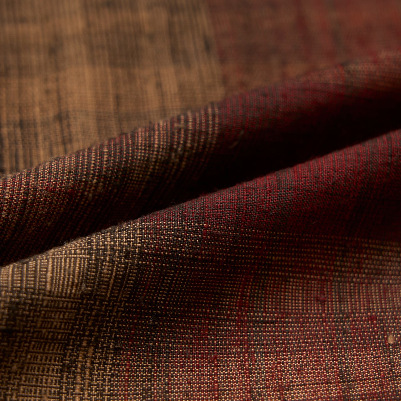 経糸を「どぼんこ染」といわれる独特の技法で染め、時間と手間をかけて織られますが、ただの格子の模様とは違って、ゆるやかな色の変化となって現れていて、奥行きのある素晴らしい模様を表しています。