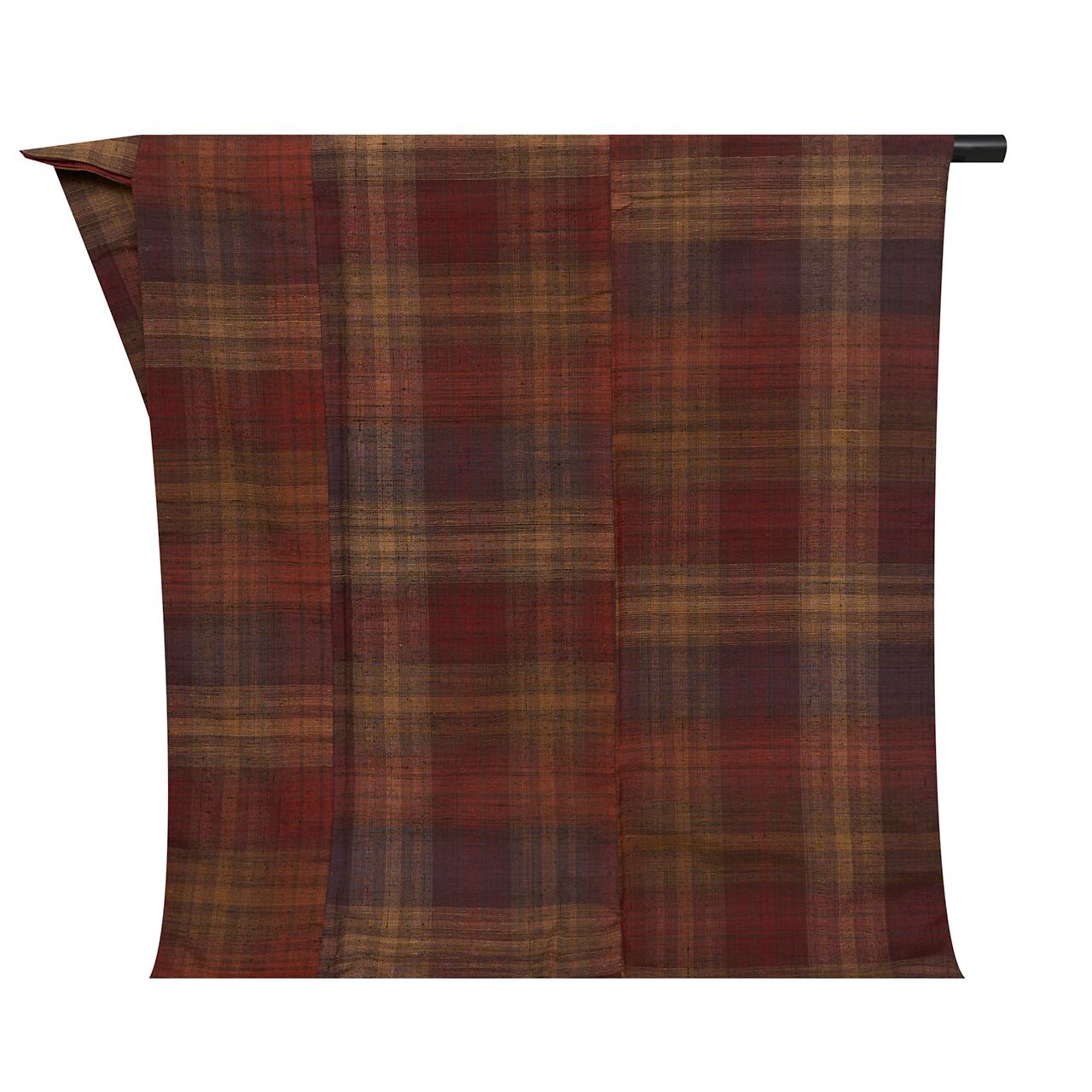 草木染別誂郡上紬 格子 袷着物 後藤ちづ子【未着用品】