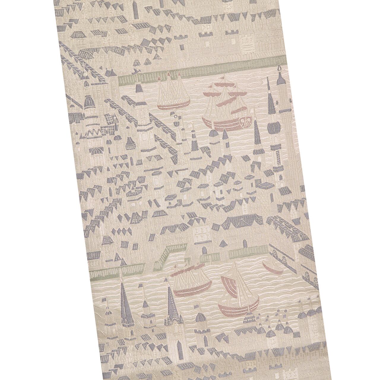 川島織物 外国の港風景模様 名古屋帯【中古】