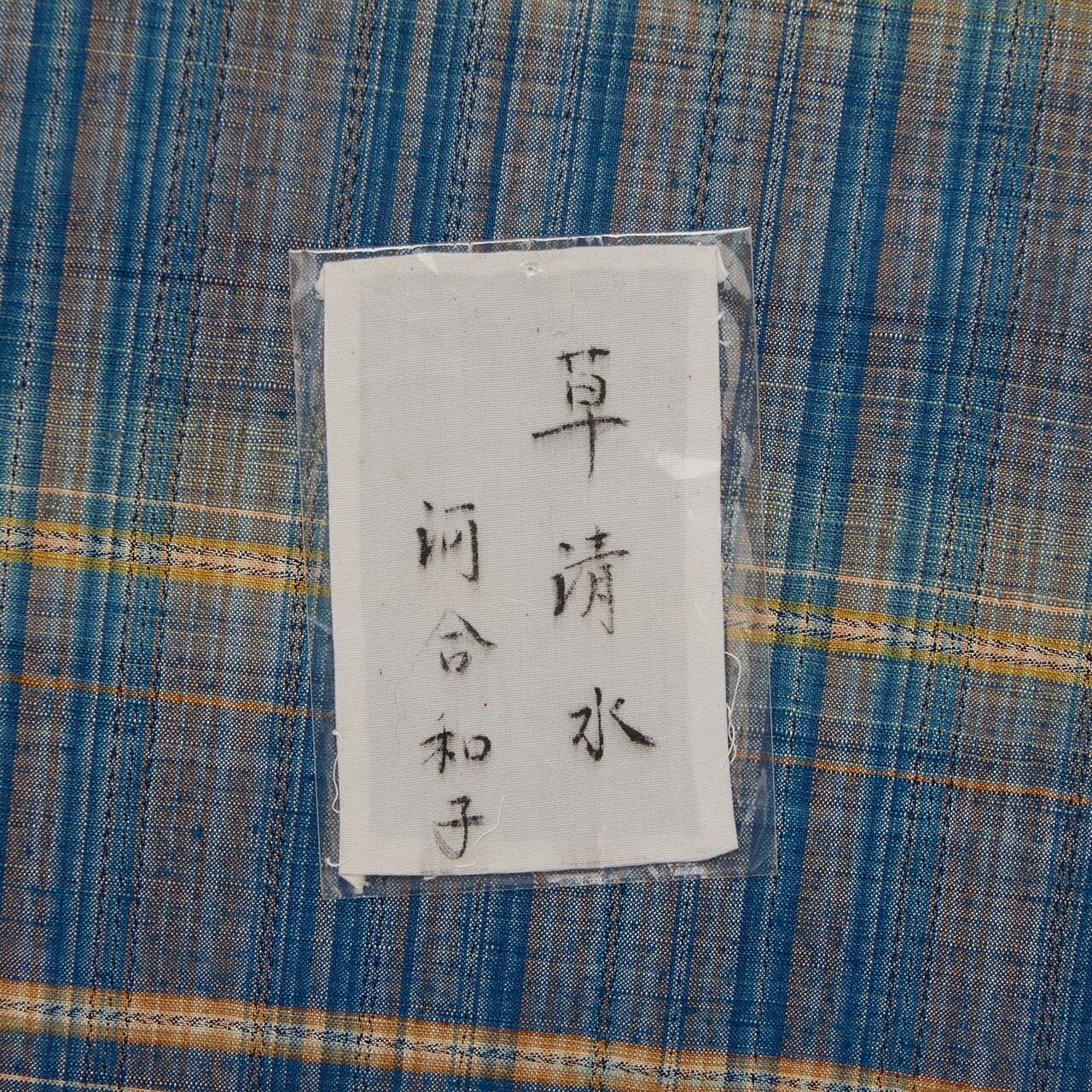 河合和子 「草清水」 草木染 格子模様 絵羽紬袷着物【中古】