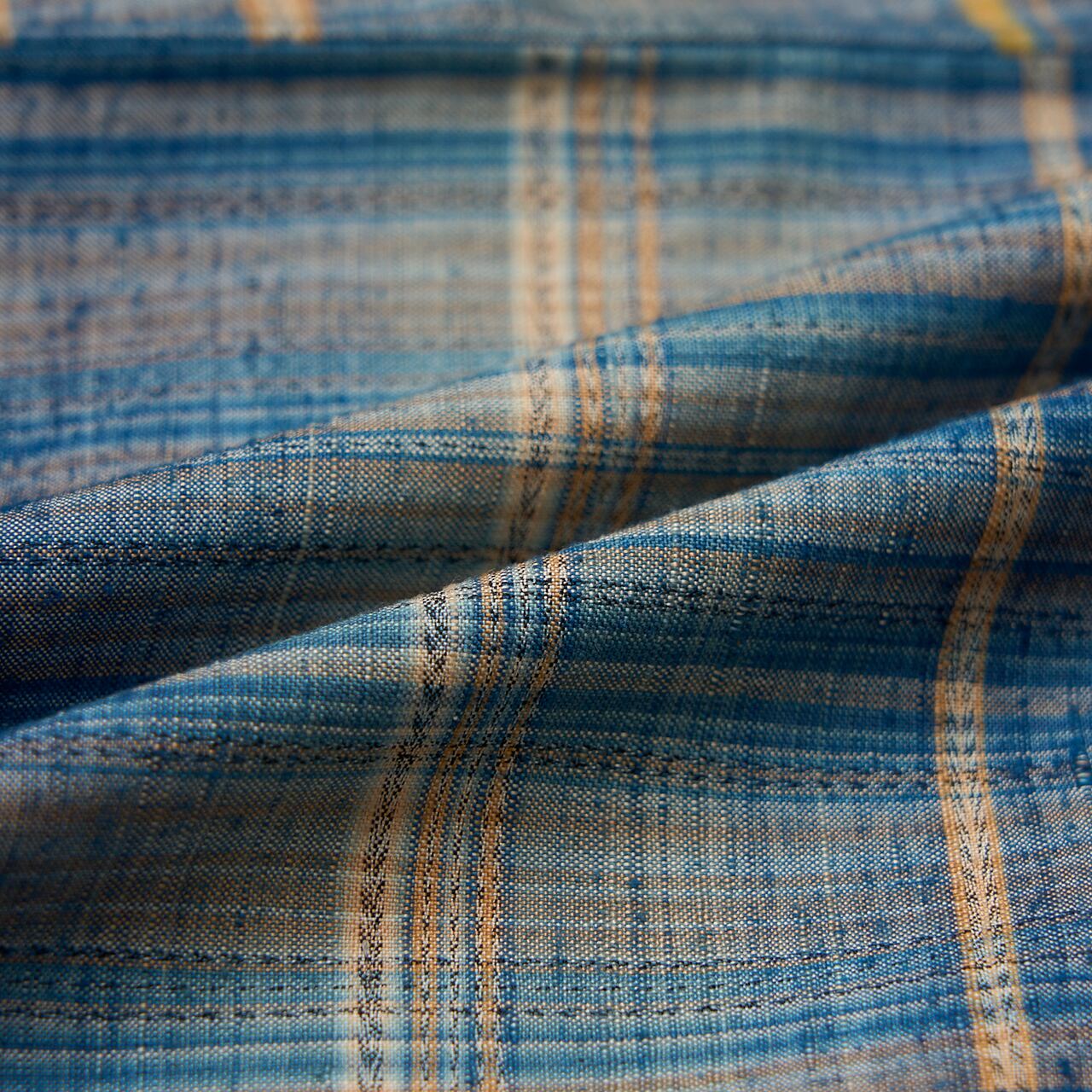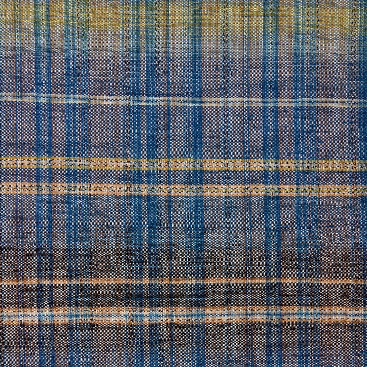 細かい部分を見ていくと、縞を挟むように2色の糸で撚った捩りの糸が使われていて、それがとても効果的に配列されて、縞の模様が引き立つようになっている事もとても素晴らしいと思えます。