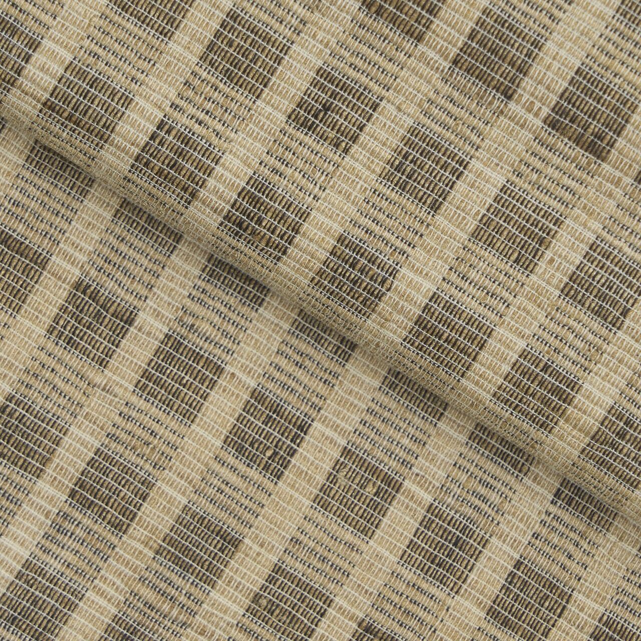 甘さのあるグレーベージュ・利休白茶色の濃淡で小格子の模様が織り出されていますが、緯糸に味わいのある手紡ぎの糸が使用されていて、変化のある格子の模様となっています。