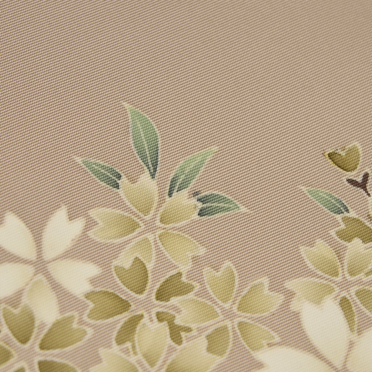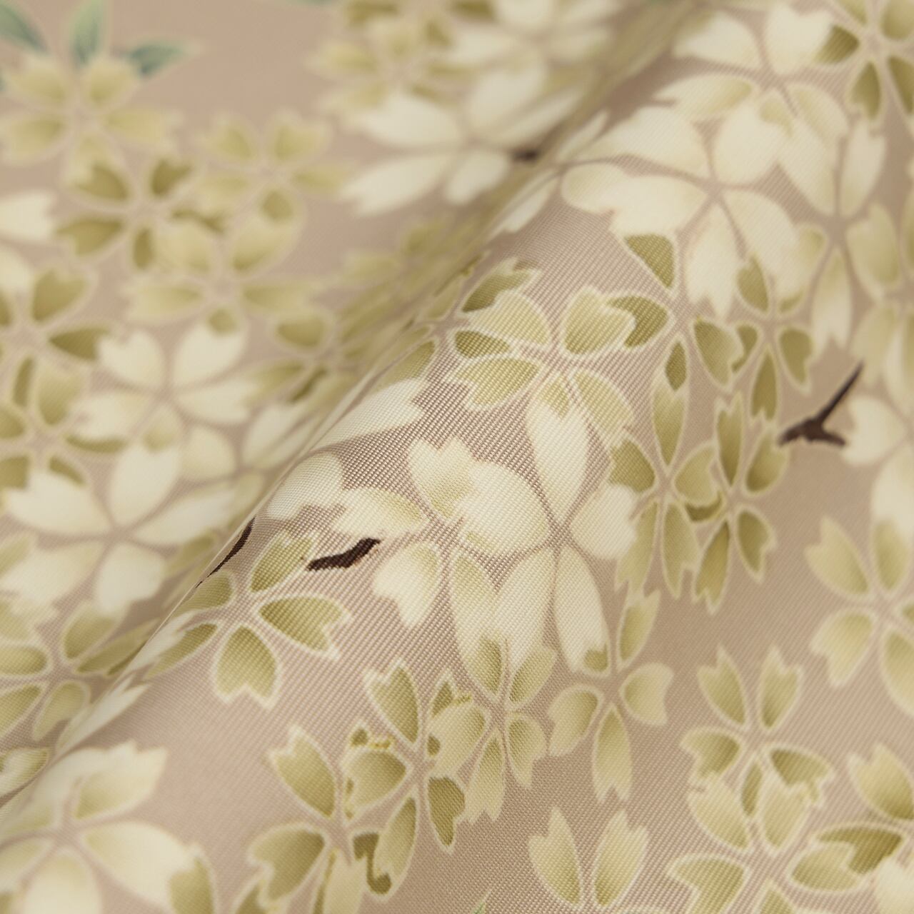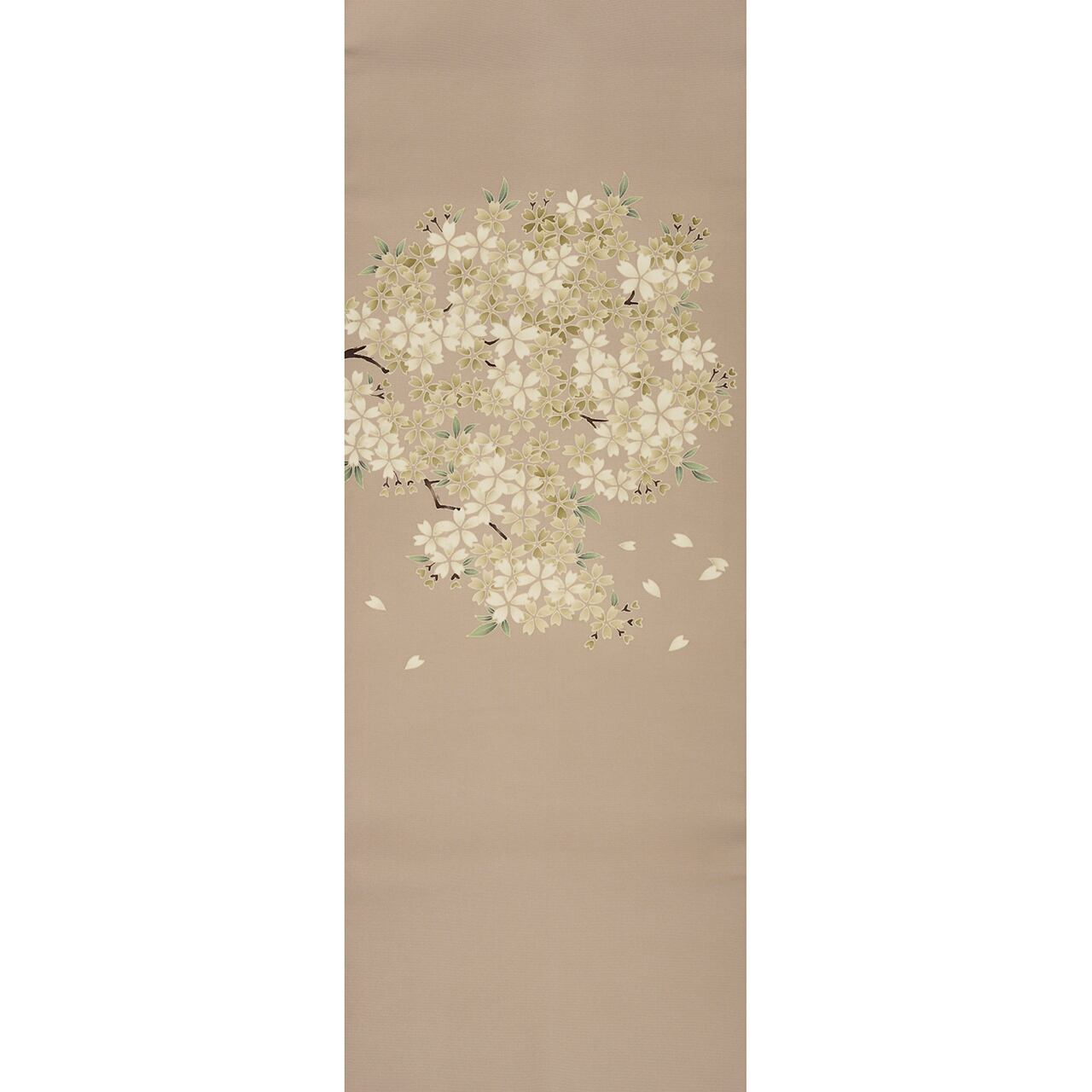 桜のお花が象牙色の白と淡いモスグリーン・柳茶色で表され、モノトーン的になっているのも、さりげなくてお洒落な雰囲気で、またはらはらと花びらが舞っている様子も、桜のお花の儚げな様子を表していてとても素敵です。