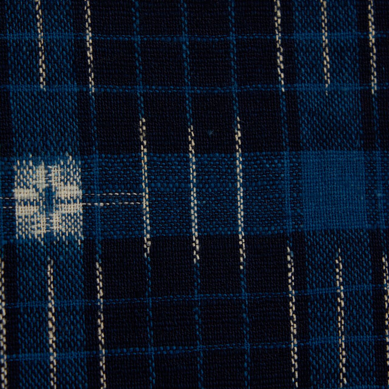 産地は特定できませんが、手紡ぎの糸を手括りで藍染して、手織りで織られている事と、室町の加納さんの別機である事からも、しかるべき作家作品かと思われます。