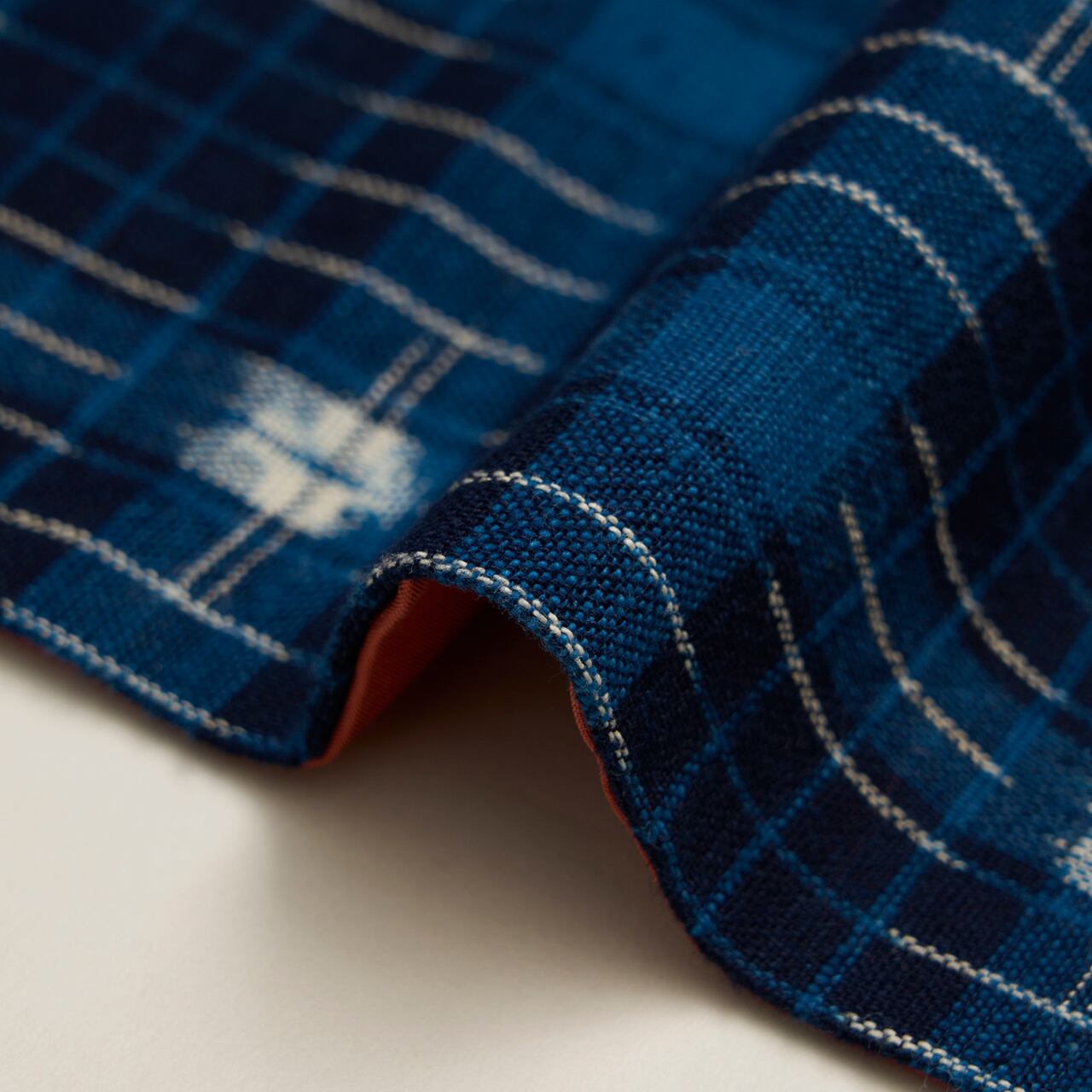 藍染めの木綿の魅力を改めて感じさせられるような、藍色の濃淡を絶妙に使いこなされているデザインと柔らかい質感に、引き寄せられるような力を感じます。