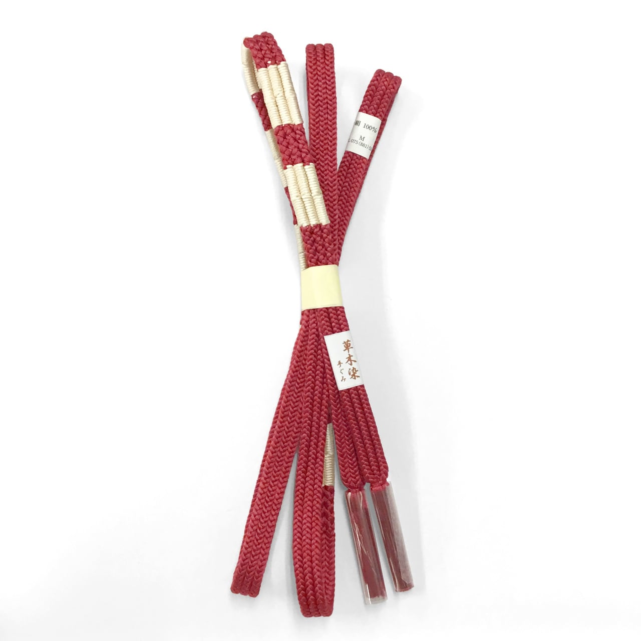 帯締め 草木染 手組み 赤紅色に象牙色【未着用品】