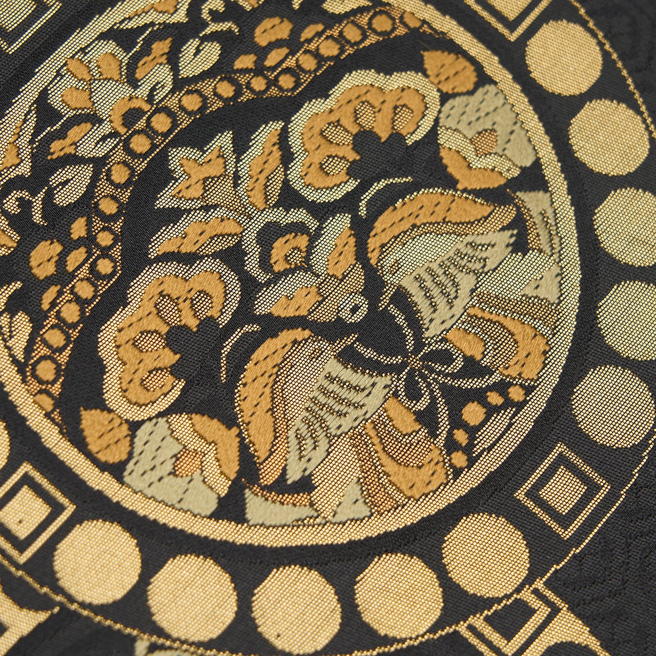 こちらの帯にも、鳥襷文、向鸚哥文、蜀江錦、螺鈿文様、鳳凰文、狩猟文、天平華文、花喰い鳥文など代表的な正倉院文様が数多く織り出されています。