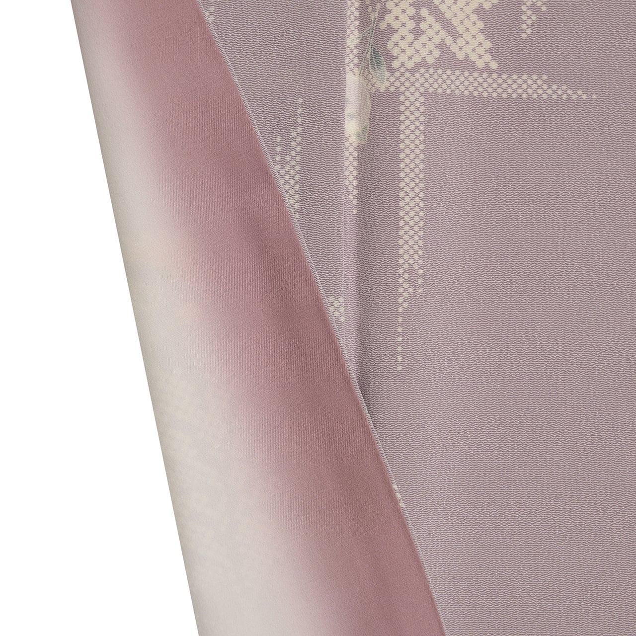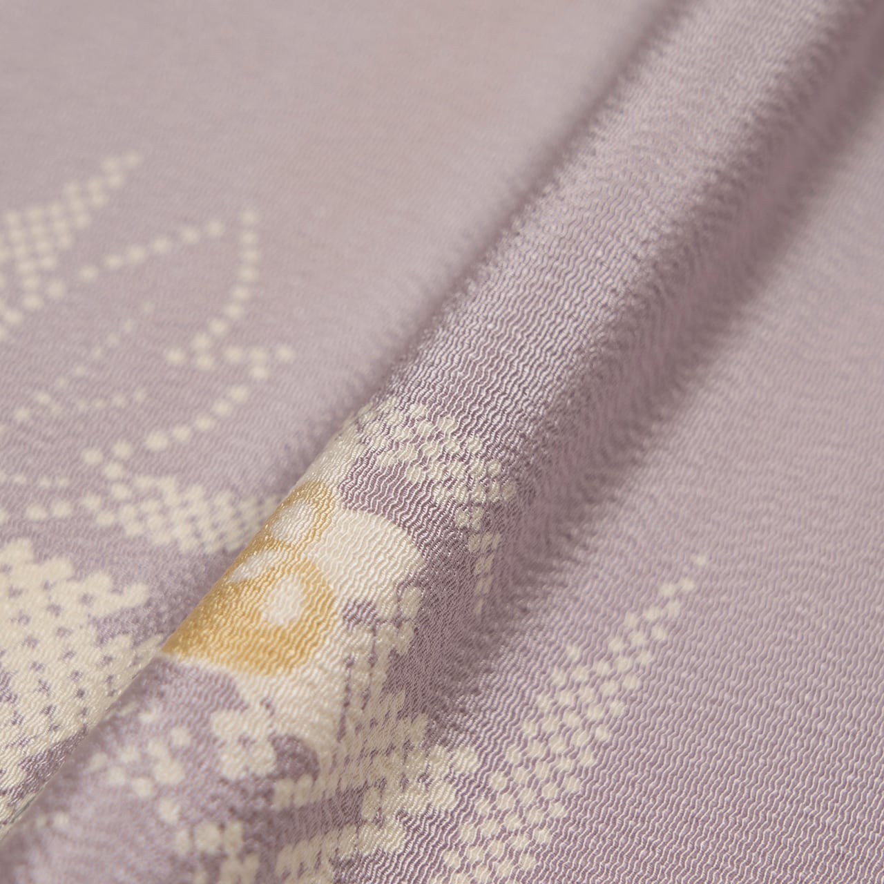 透明感のある地色の薄紫が上質な生地に染められて綺麗な光沢を放っていて、品格のある素敵な装いを実現してくれそうな、大変おすすめの一点です。