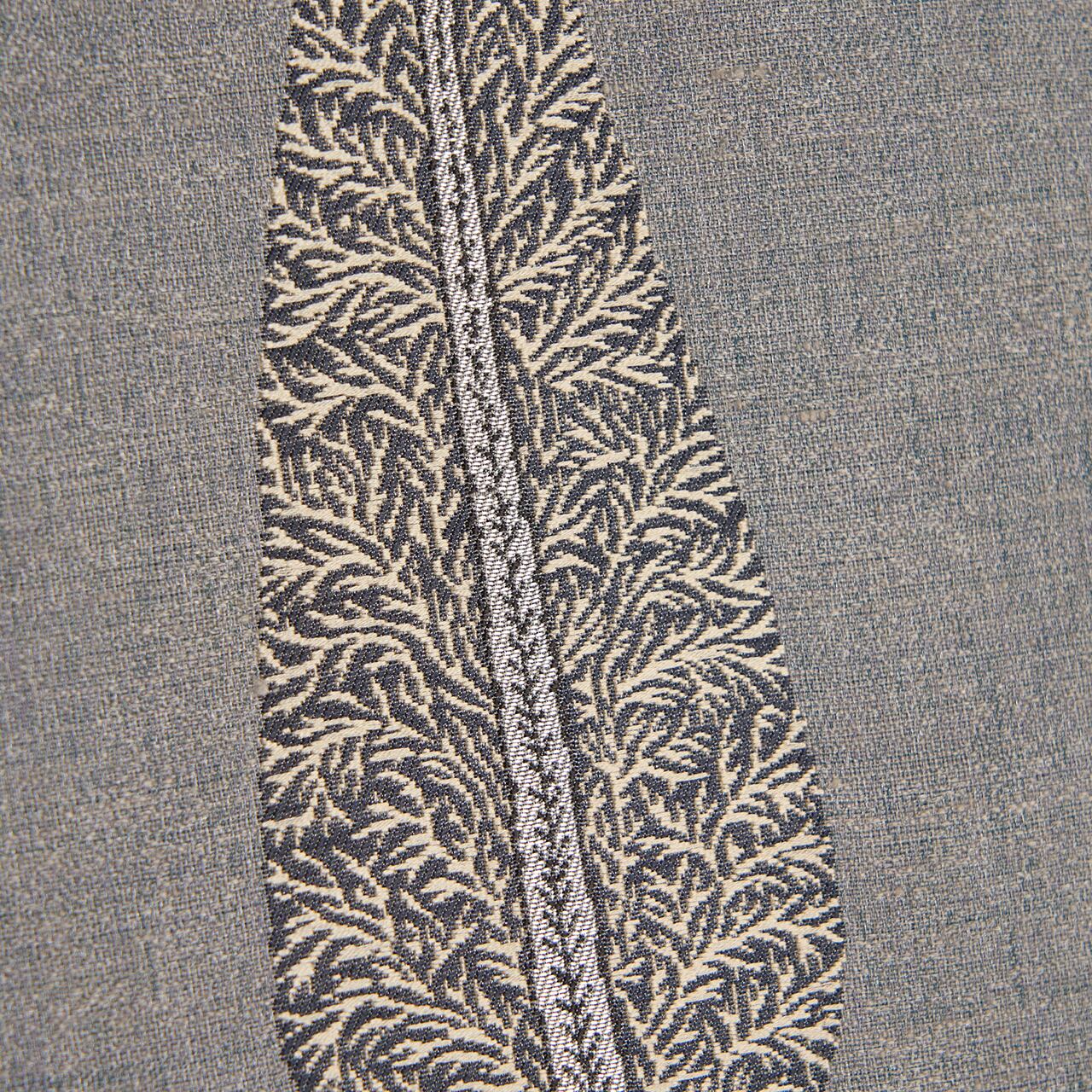 織楽浅野さんの解説によりますと、経が絹糸で、緯に真綿紬と銀糸を合わせて、紬の持つざっくりとした質感を残しながらも、薄手で軽やかに仕上げているそうです。