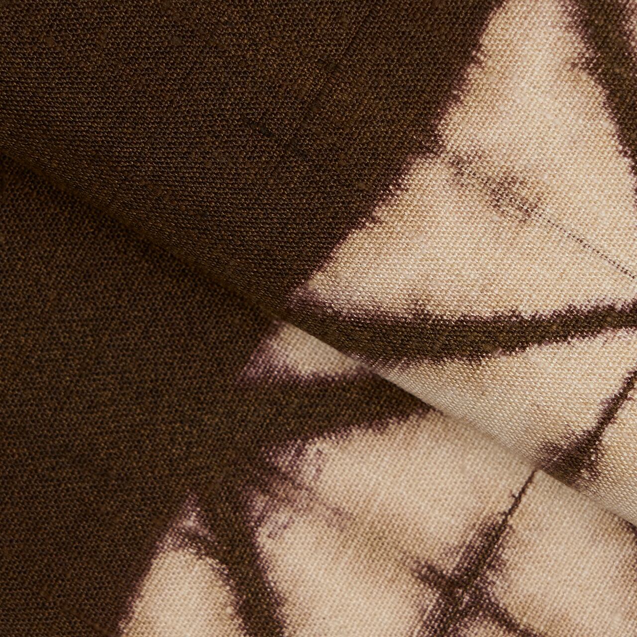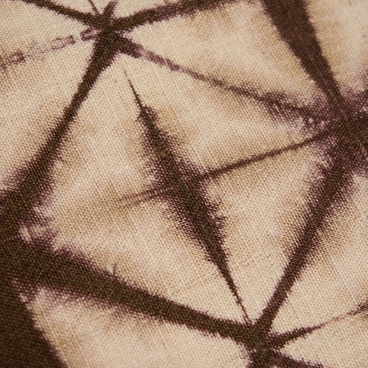 絞り染めには様々な技法がありますが、計算された柄の規則性と、浸け染めによる染料の浸透で生まれる偶発性のある味わい、どちらの面白さも併せ持っています。
