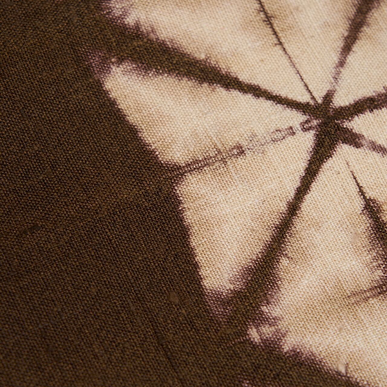 そうして染めあがったものを開きますと、雪花絞りの模様が花開くように現れて、無地のところとのコントラストもお洒落な模様ができあがります。