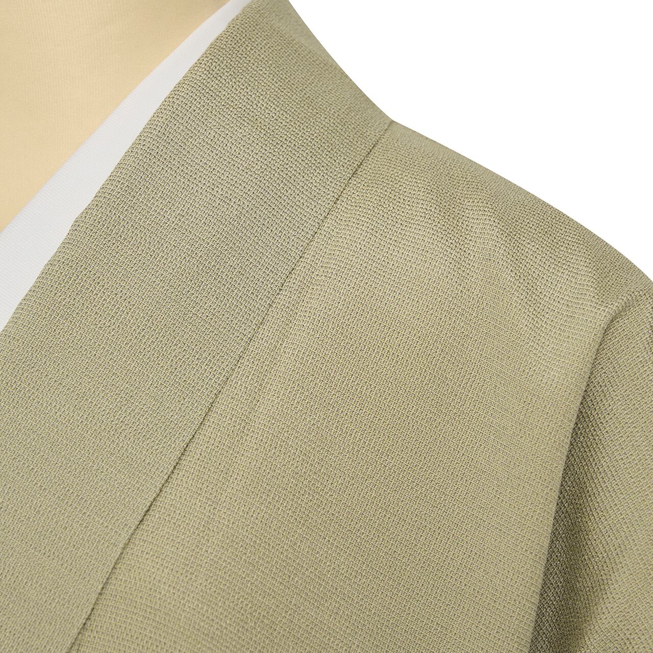 少しだけ緑味のあるグレーベージュ・利休白茶色の、極々小さいみじん格子のような地模様が織られ、ほとんど無地のように見える、お洒落な本塩沢のお着物です。