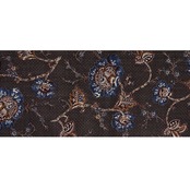 更紗模様の帯としては少し珍しい色使いといえますが、シックな色使いの中に蔓の胡桃色とお花の藍鉄色が冴えていて、特に花びらの藍鉄色が手挿しで染められているところなどに、味わいが感じられます。