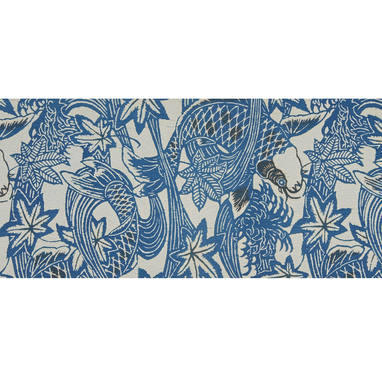日本工芸会正会員 松原與七 長板中形藍染 鯉に紅葉模様 名古屋帯【未着用品】