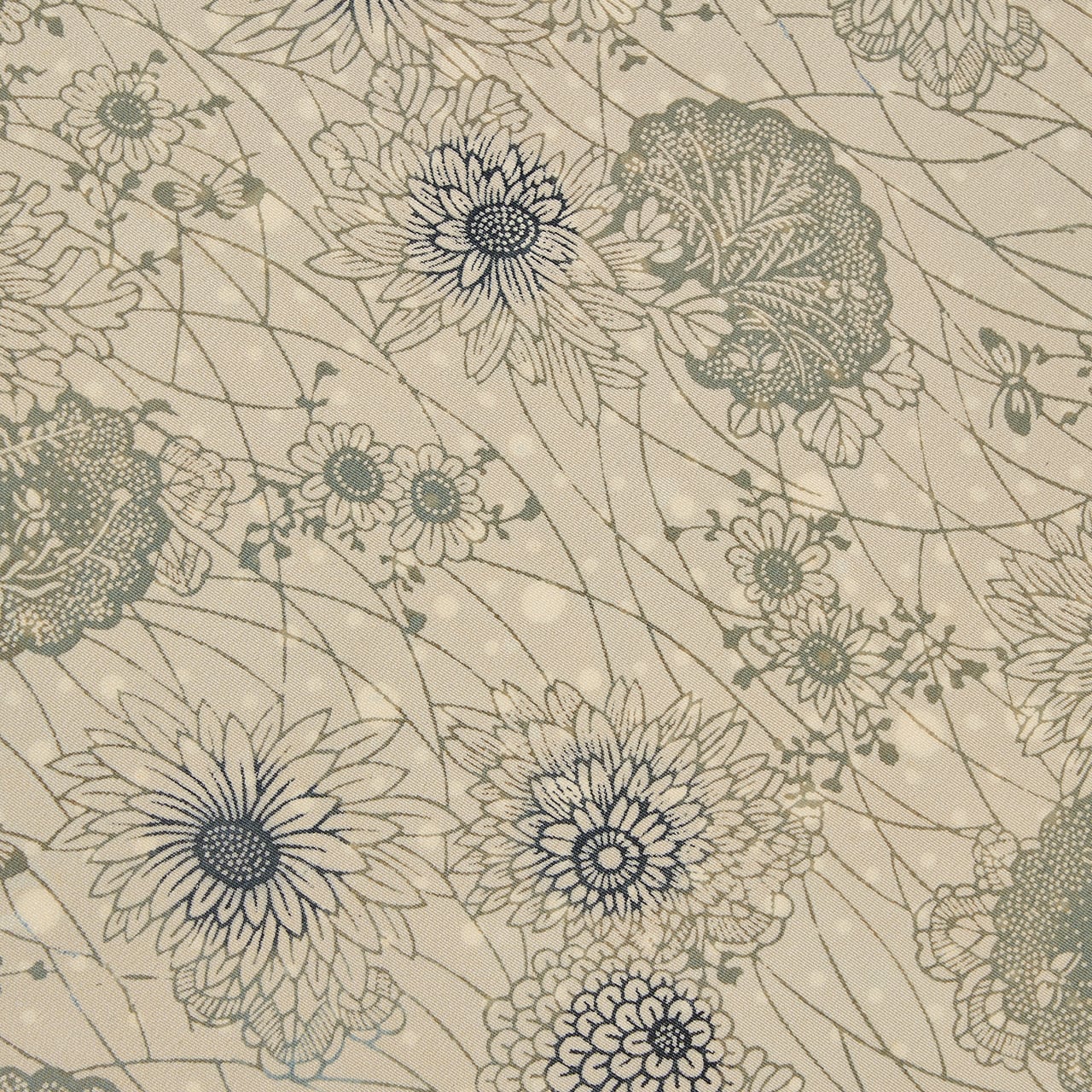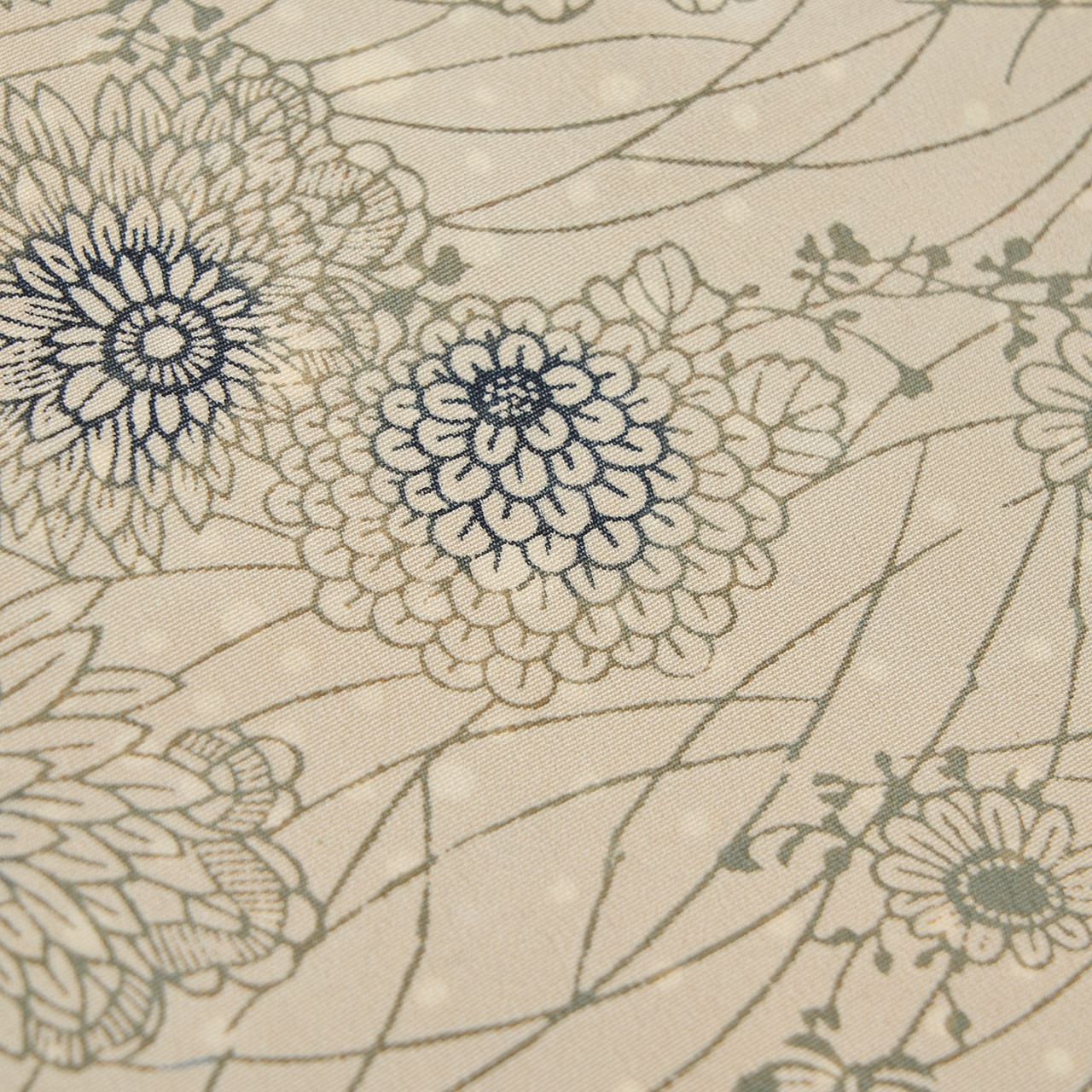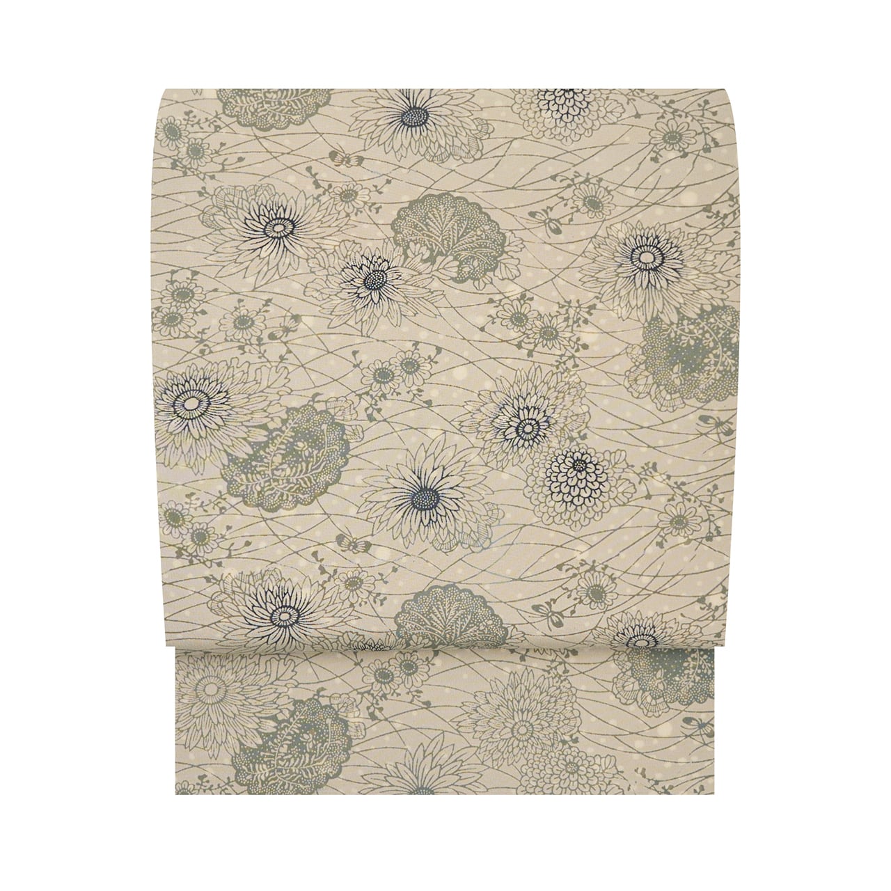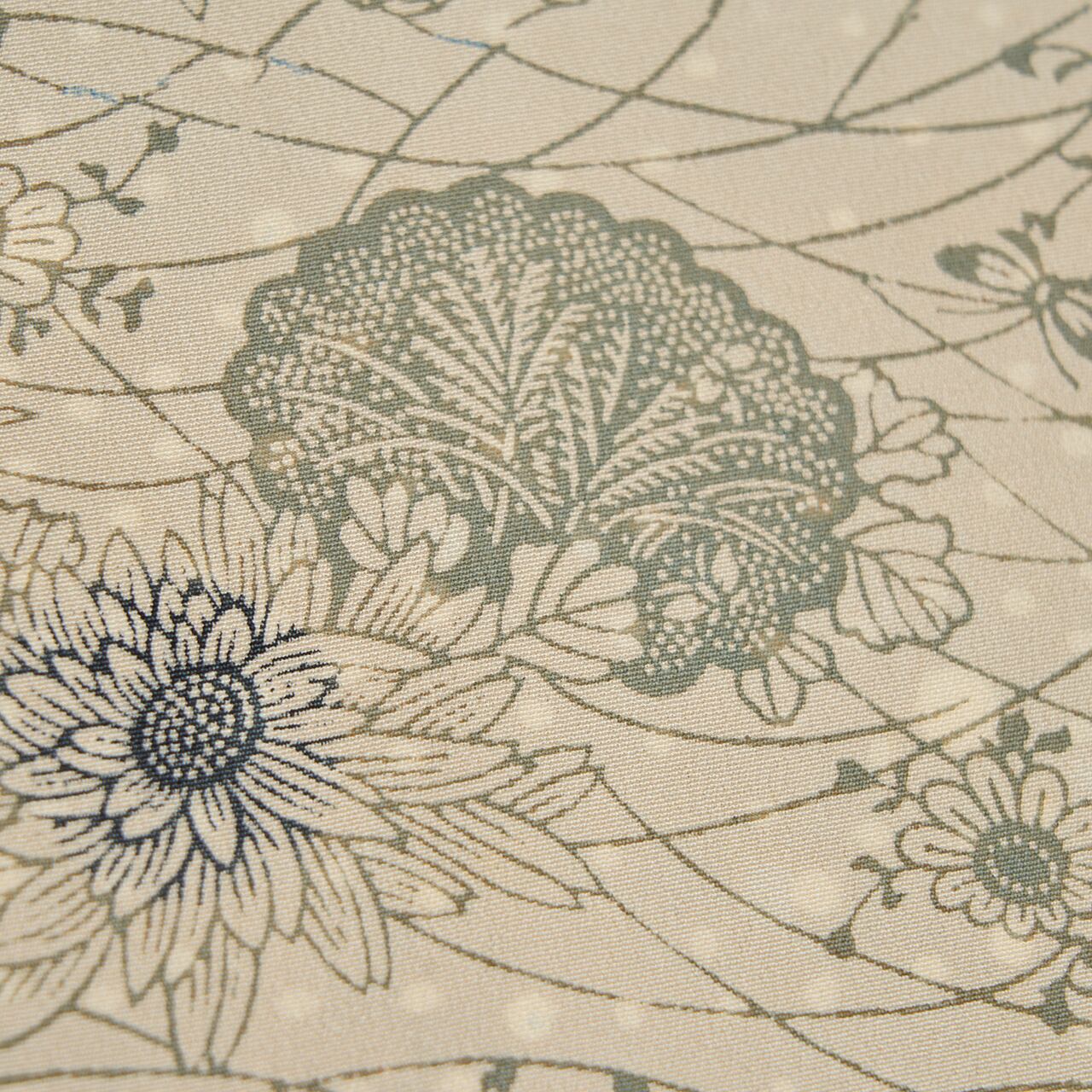 両面染めの模様となっていて、裏面に染められた細かい水玉の模様が少しだけ表に反映されていて、灰黄緑色の地染めに、うっすらと白く透けて見えるのも計算されたデザインと思われ、心憎いです。