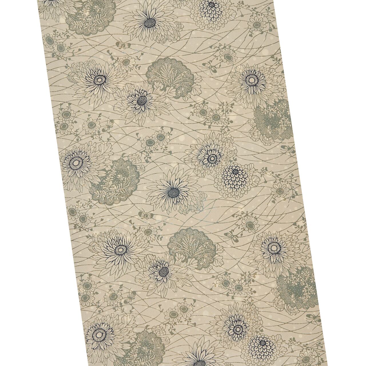 日本工芸会正会員 松原與七 長板中形藍染 菊の模様 名古屋帯【未着用品】