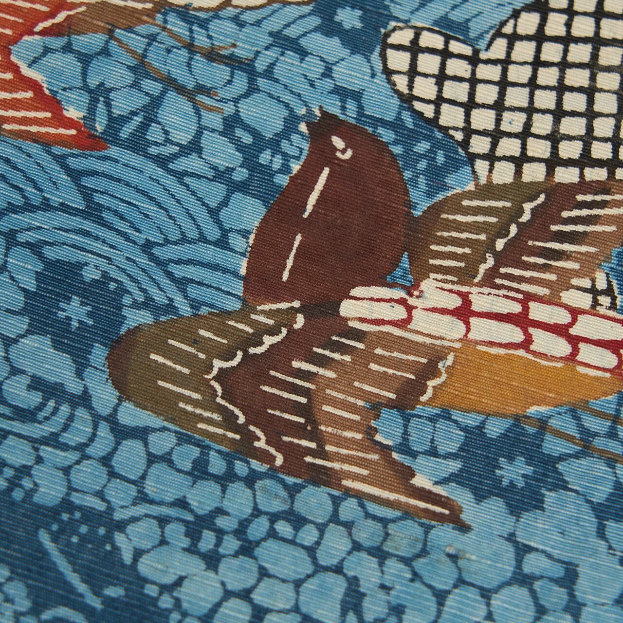 それによって、地染めの安定感のある背景と、躍動感のある千鳥の模様とのコントラストが、絶妙な立体感を生み出していて、見応えのある作品となっています。