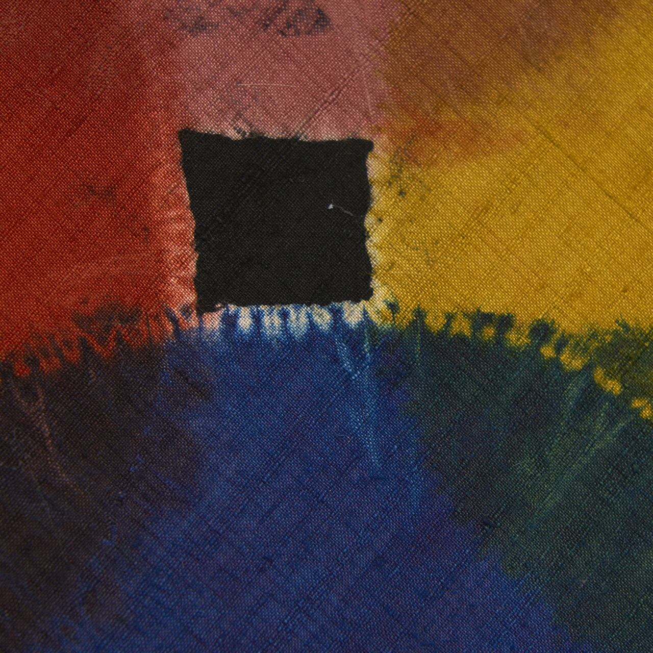 そういった斬新で大胆なアーティスティックともいえるデザインを、手間をかけて染められたところに、なんとも牧歌的といいますか、素朴な子どもたちの模様をアクセントのように配置されるところが、やはり小島さんのセンスなのかもしれませんが、それがある事で安心感のような、とても心和むような楽しい作品となっているように感じます。