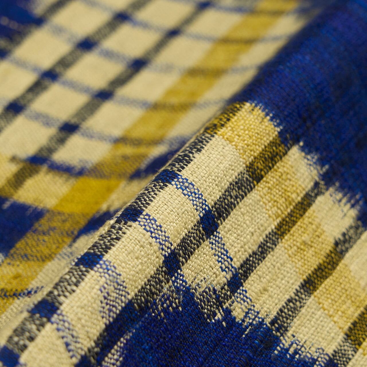 矢羽根は右側は下に、左側は上に向かって織られていて勢いが良く、躍動感が感じられて、その模様を織り出された絣の足もとても味わいがあって、手機ならではの上質な雰囲気を醸し出しています。