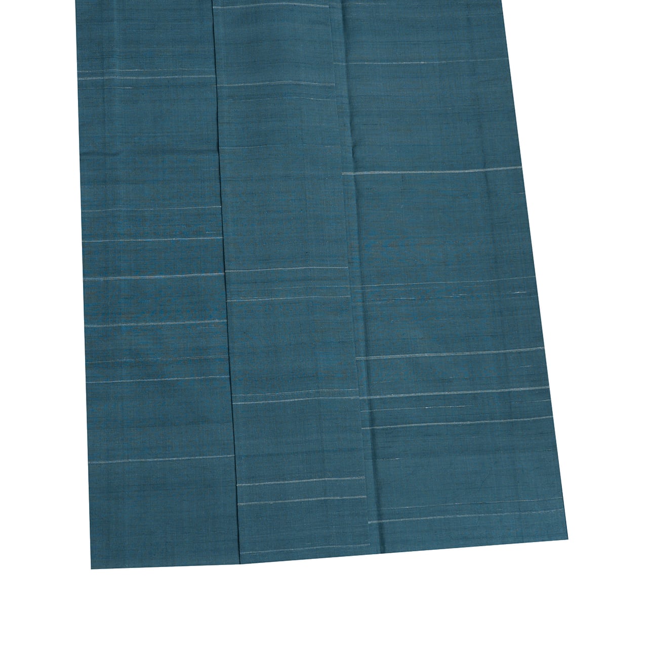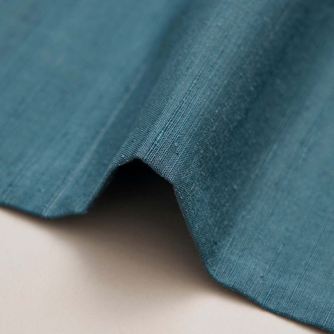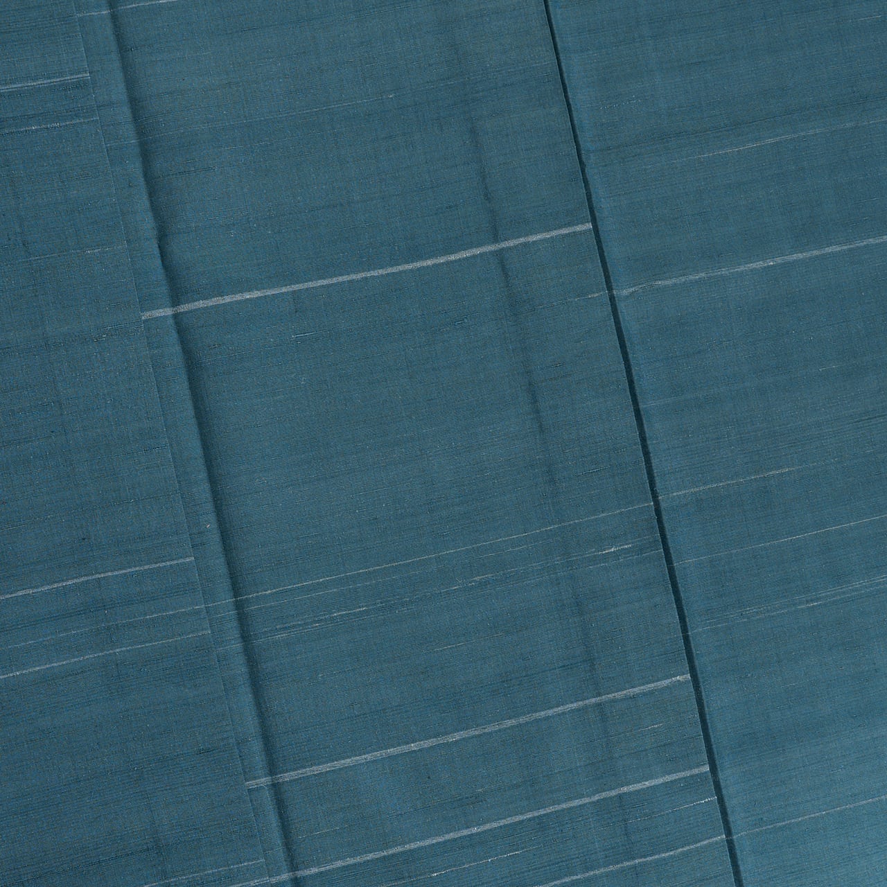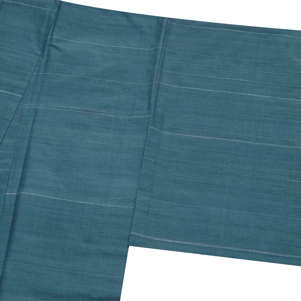 藍色の無地一色ではなく、草木染ならではのニュアンスのある濃淡と、ところどころに入れられた山繭の糸の存在がアクセントのようになって、全体的に表情豊かなお着物となっています。