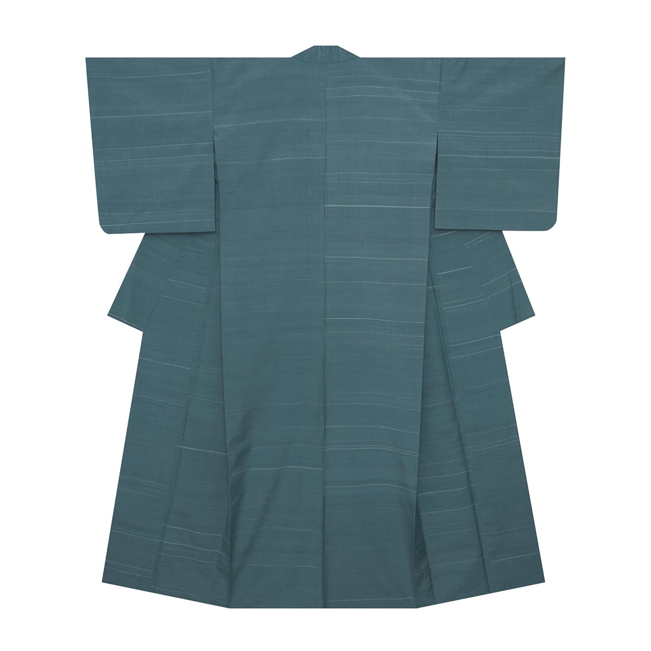 本郷織物工房 「有明紬」 山繭入り手織紬 単衣着物【中古】