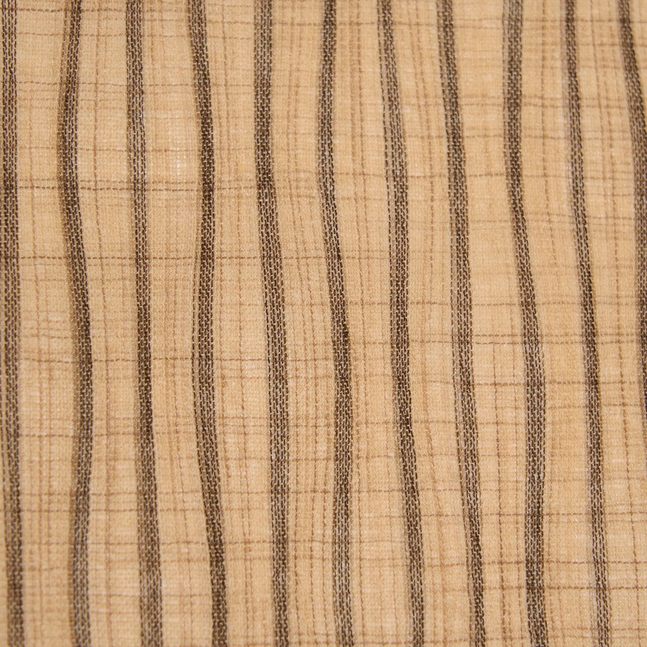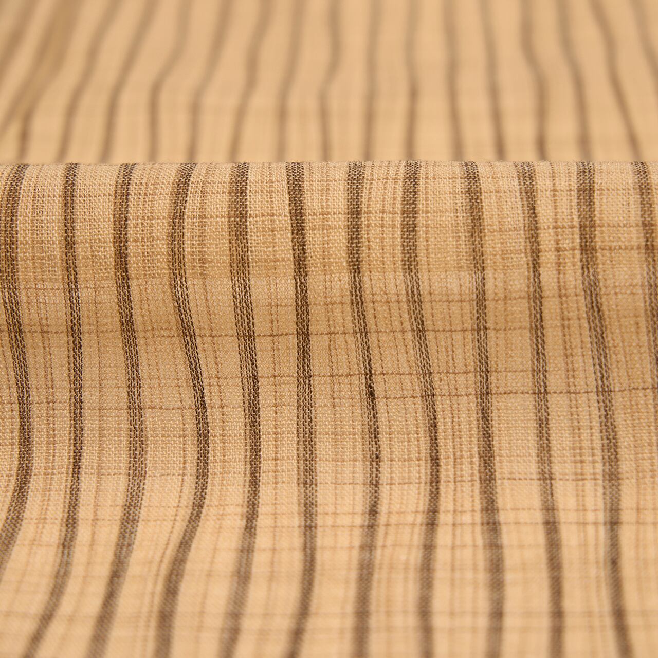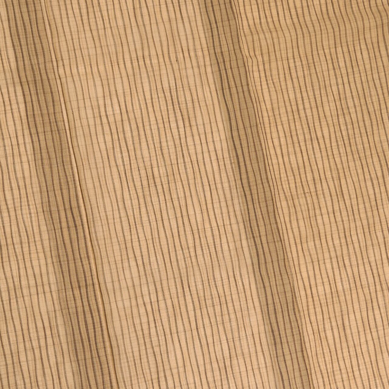 柿渋で染められた細い糸で、丁字染の地に、濃い焦げ茶・涅色の細い縞がよろけるようにうねうねと織り出された、少し透け感のあるシャリっとした質感の紬紗のような、とてもお洒落な雰囲気の単衣のお着物です。