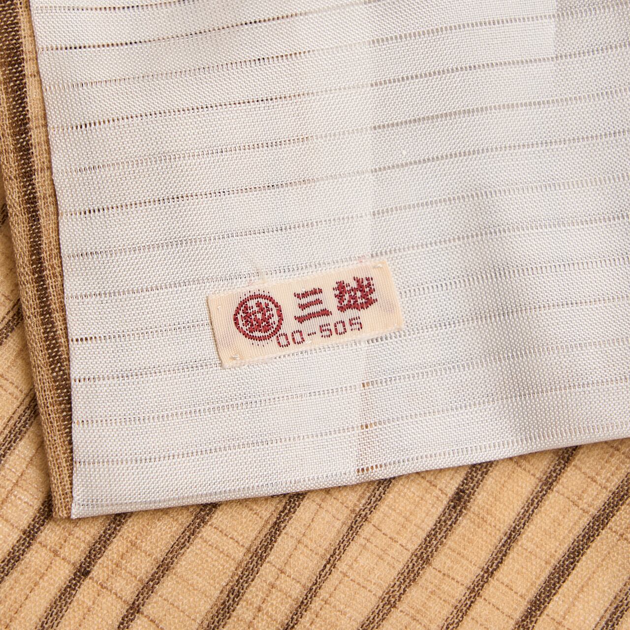 よろけ縞模様 柿渋染 紬紗 単衣着物 三越扱【中古】