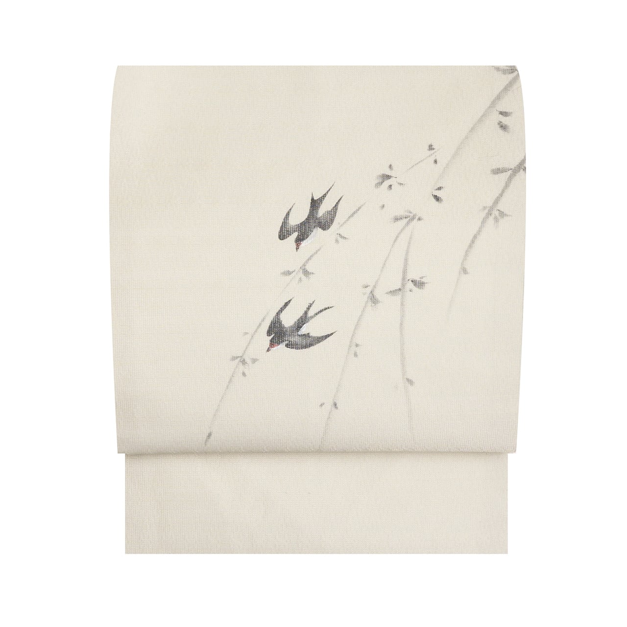 枝垂れ柳にツバメの図 手描 夏名古屋帯【未着用品】