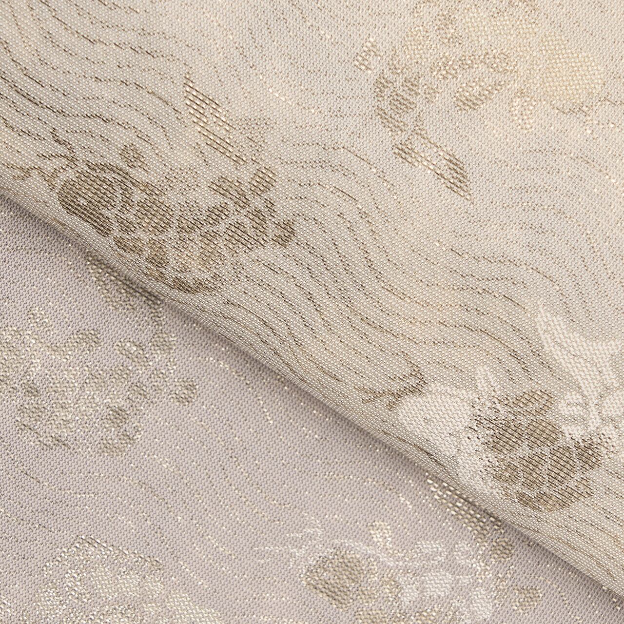 やや透け感のある素材にシックな色が織り出され、銀の荒磯文様が美しい光沢を放つ、とても素敵な大変おすすめの一点です。