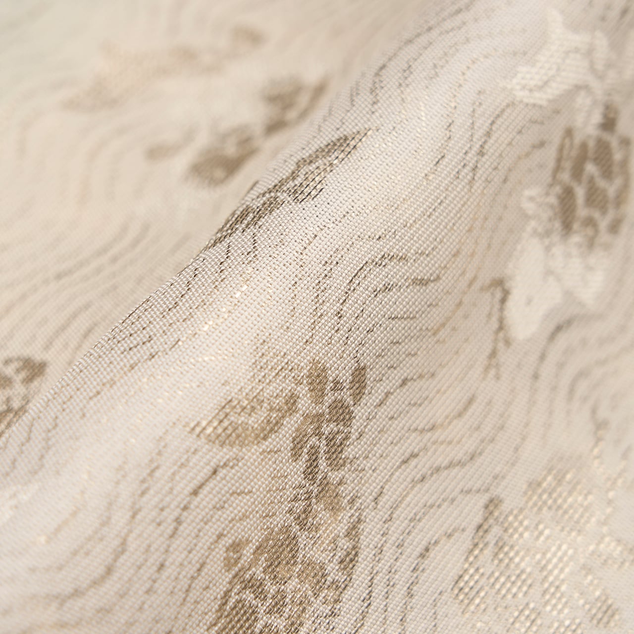 名物裂文様というだけでも格がありますが、うねるような波の線も少し途切れるように表されていたり、鯉の姿も銀駒糸と銀の箔糸とを巧みに使い分けて、かすれたように表現されていたりと、どこか古色然とした趣のある高尚な雰囲気になっています。