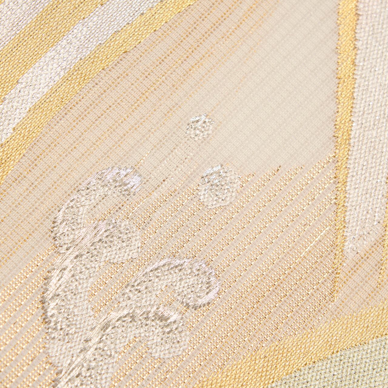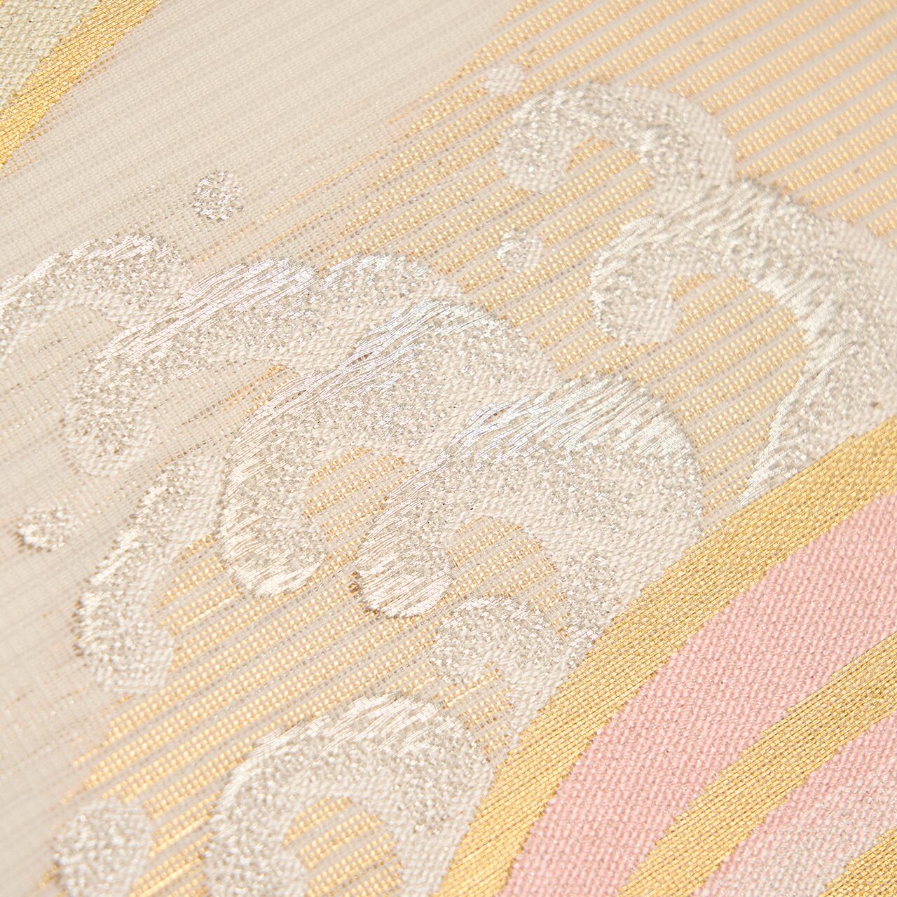ゆるがない安定感のある帯地で、金糸・銀糸は駒糸と箔の糸を駆使して絶妙に使い分けられ、立体感のある素晴らしい模様が織り出されています。