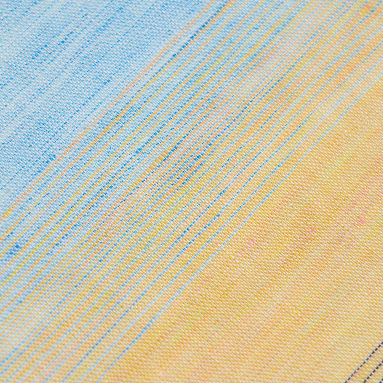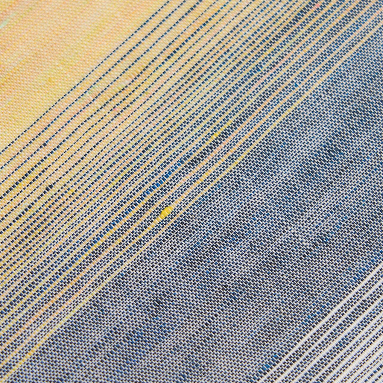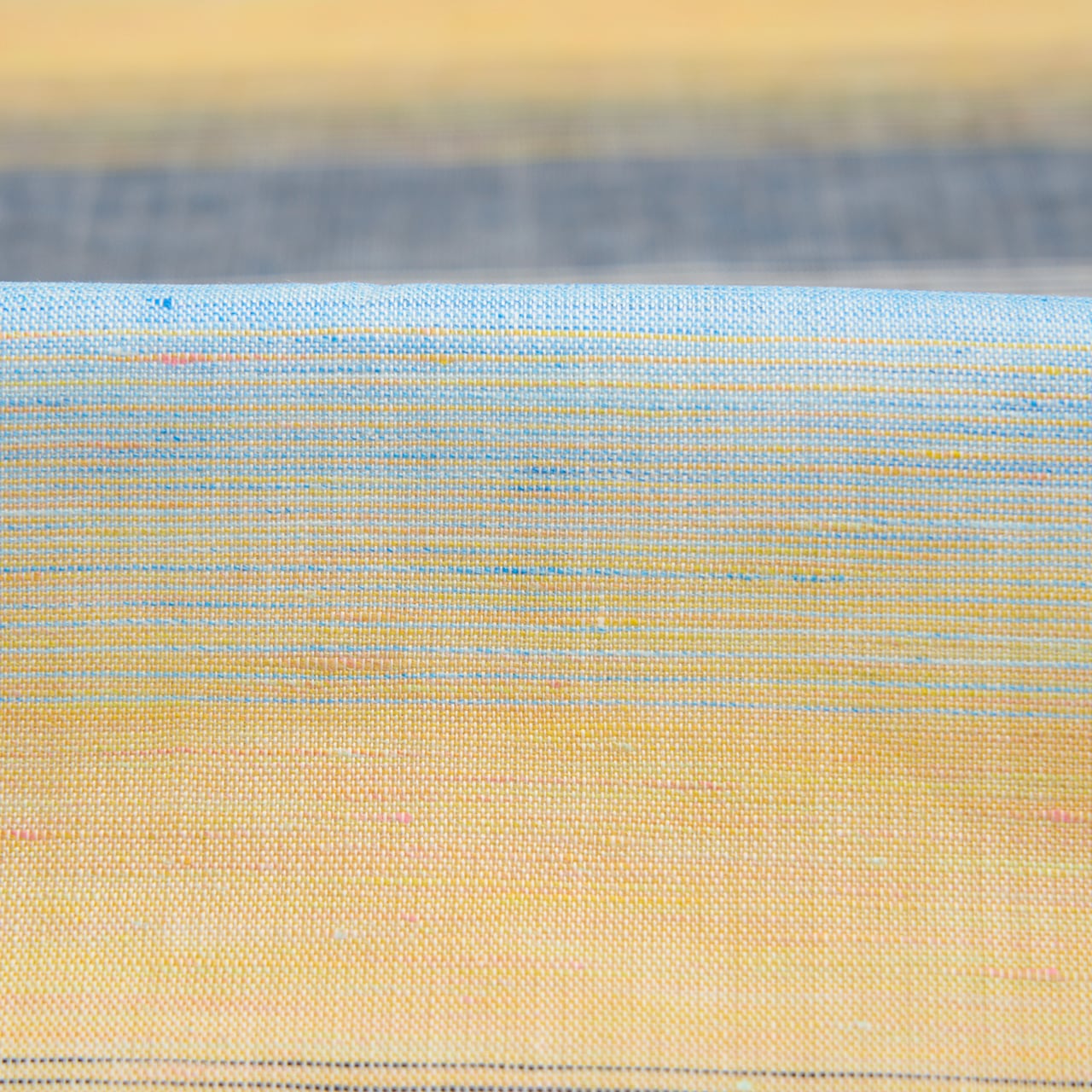 白の部分は麻ならではのすっきりとした光沢と発色で清々しさが感じられ、浅縹色と蜂蜜色の変化するところも、朝焼けの空の色のようでとても綺麗です。