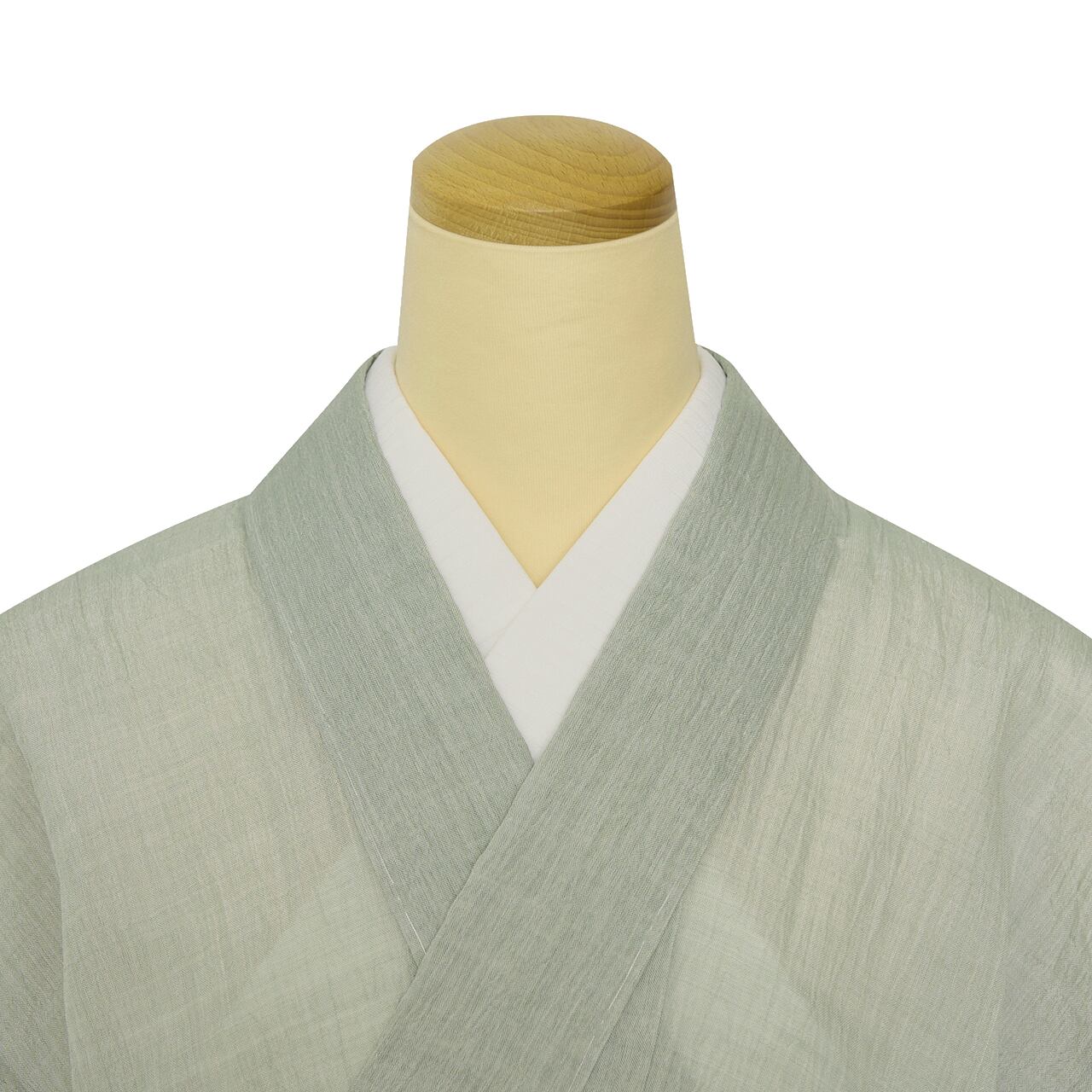 さらりとした質感は着心地も良さそうで、上品な錆青磁のやさしい色合いはいろいろな帯を合わせてお楽しみいただけそうです。