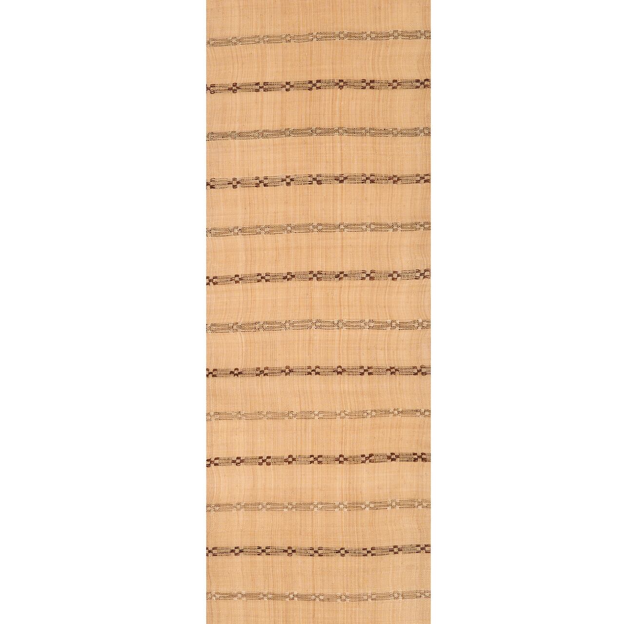こちらの帯の無地の部分は、他の芭蕉布の生地と比較しても特別光沢が良く、つやつやとしていますが、よく見てみますと小さな結び目を所々に発見することができて、手仕事の証のような味わいが感じられて嬉しく思えたりします。