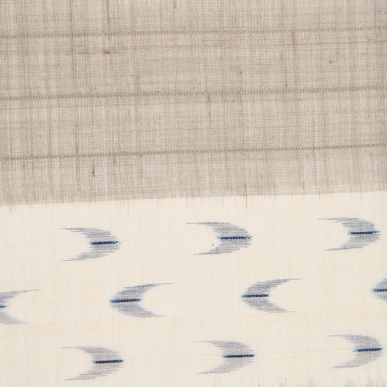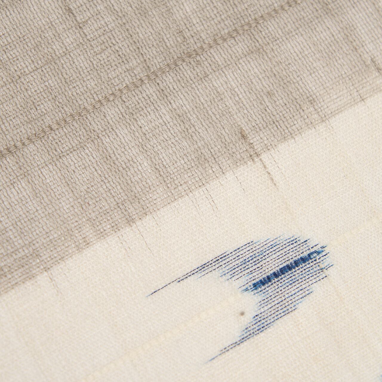 全体に、等間隔に緯糸に入れられた浮き織がさりげないアクセントとなっていますが、絣の模様の中心にもそれが掛かるように配置されて、飛んでいるツバメのようにも見えて、躍動感のある爽やかな印象となっています。