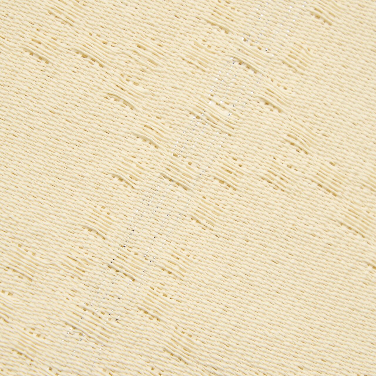 経緯とも象牙色の紙の糸でたおやかに織られた紙布の地に、可愛らしい花織が織り出された、とても清楚でお洒落な無地の八寸名古屋帯です。