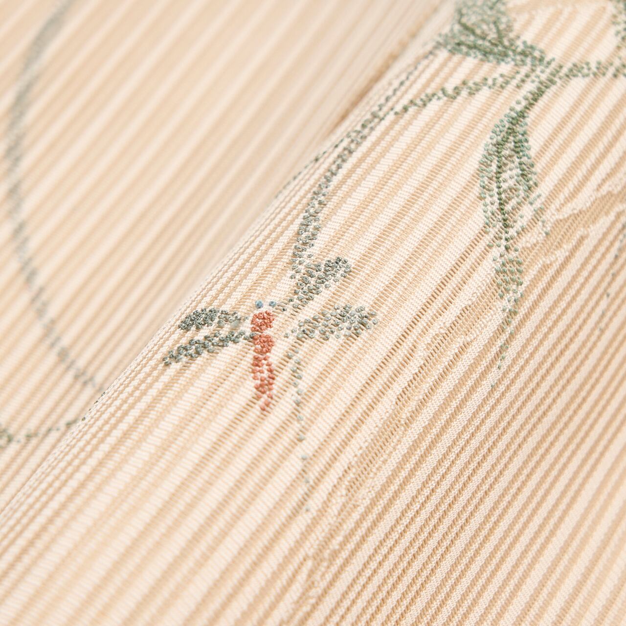 お太鼓にはススキの葉が透かし織で織り込まれていて、刺繍の模様と重なって美しい遠近感をもたらしています。