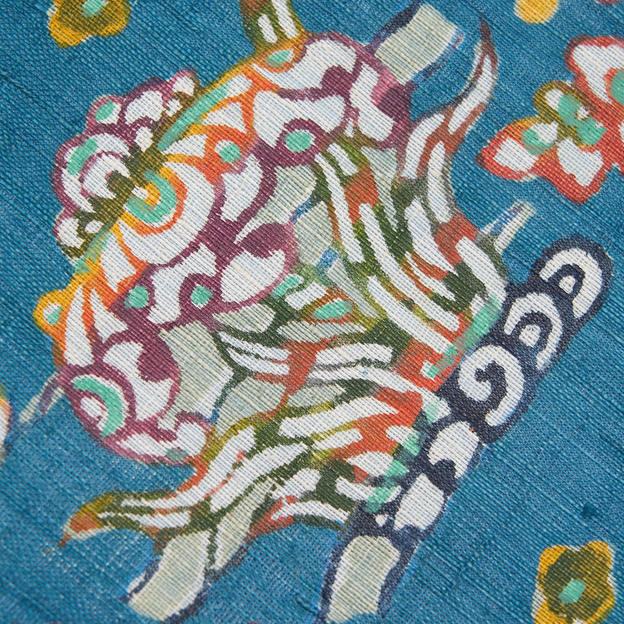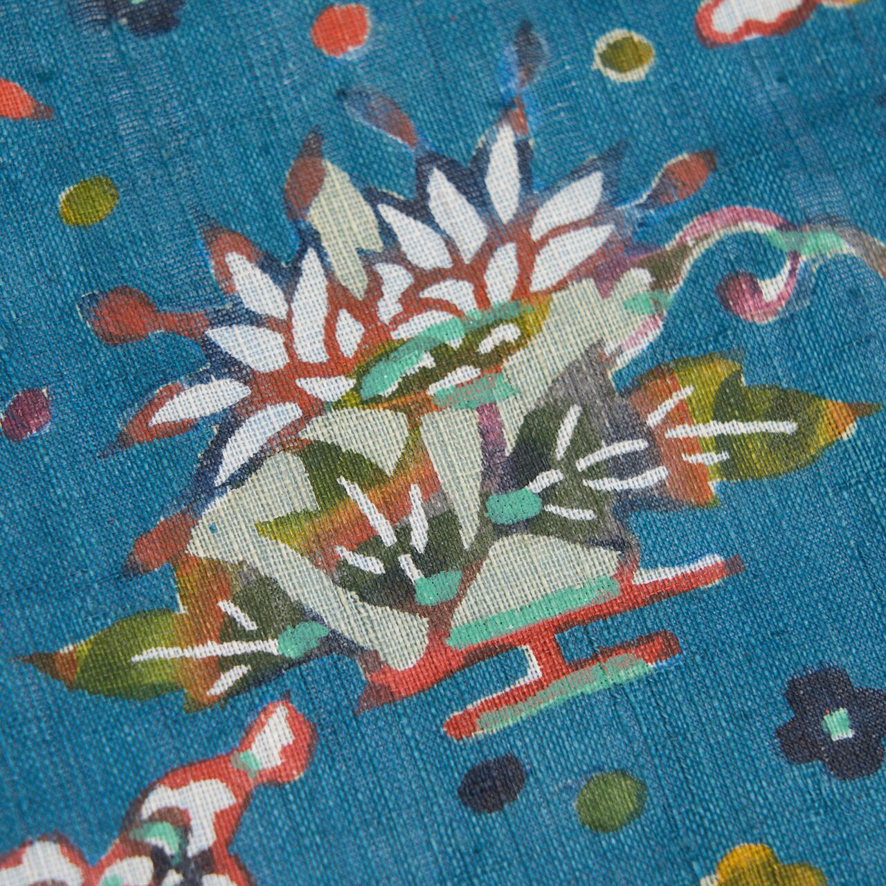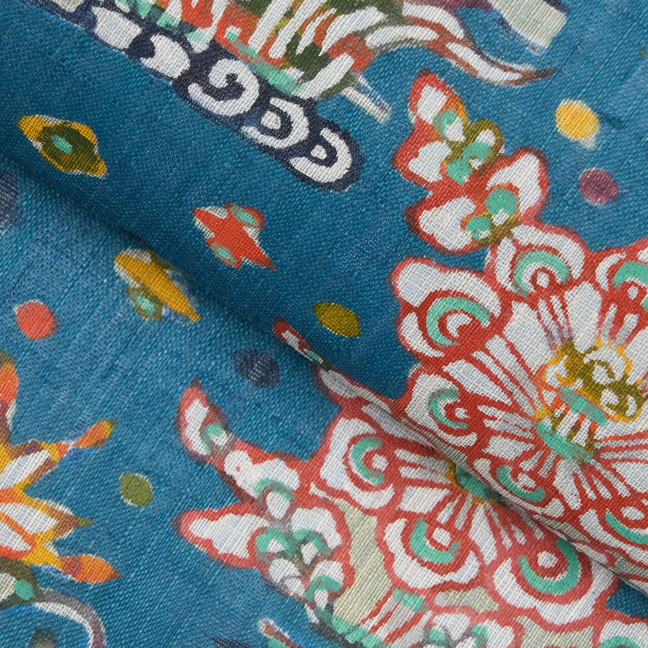 型絵染ならではの発色の美しさがお楽しみいただけて、また地染めの藍色の重厚さと透明感が素敵です。