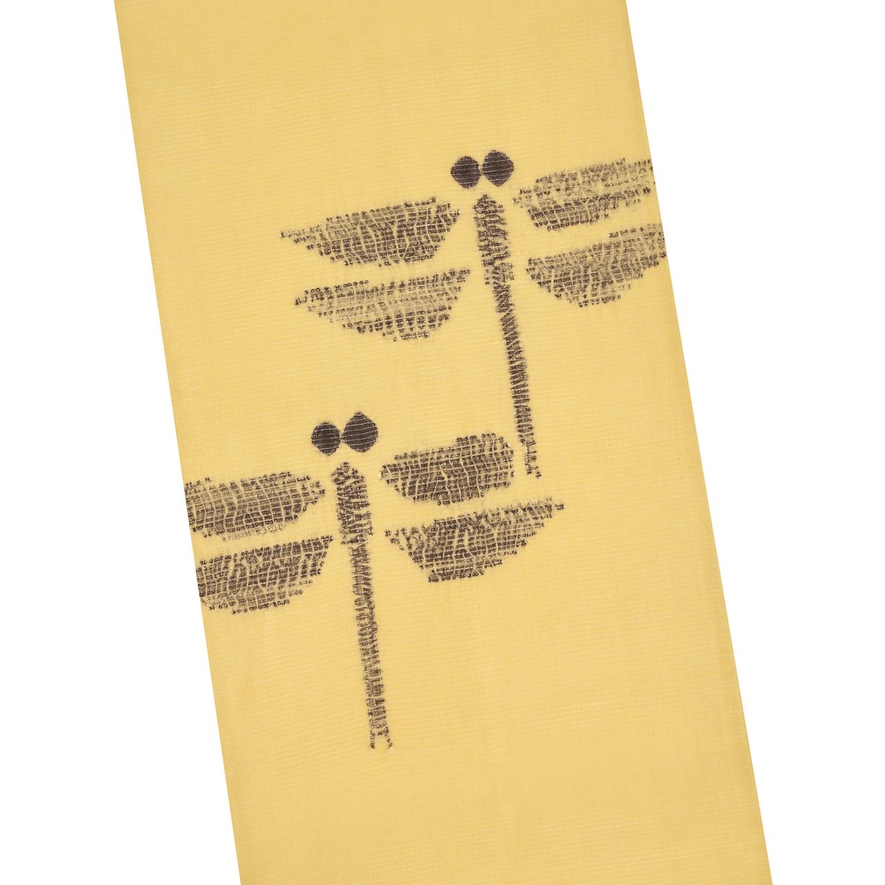 トンボの姿は友禅などで描かれたものとは違い、細かな縫絞りで表されていてラフな印象となっていますが、それもまた味わいが感じられ、躍動感のある素敵な帯となっています。
